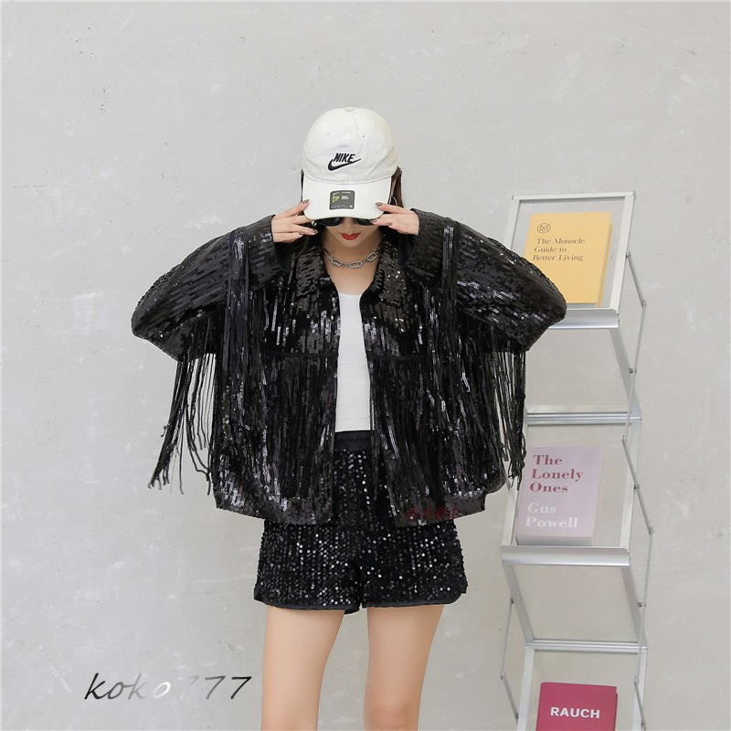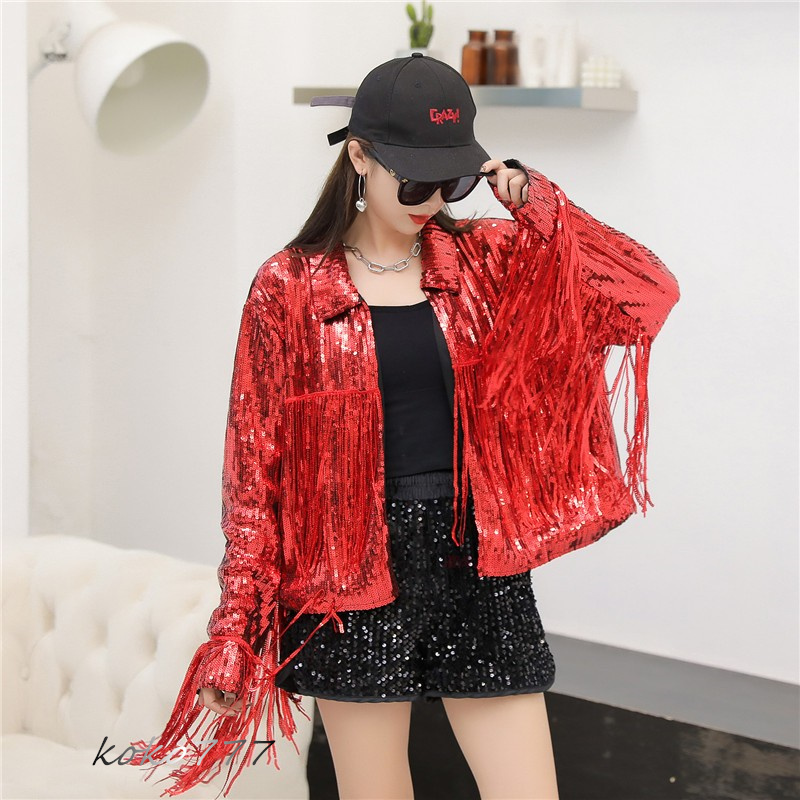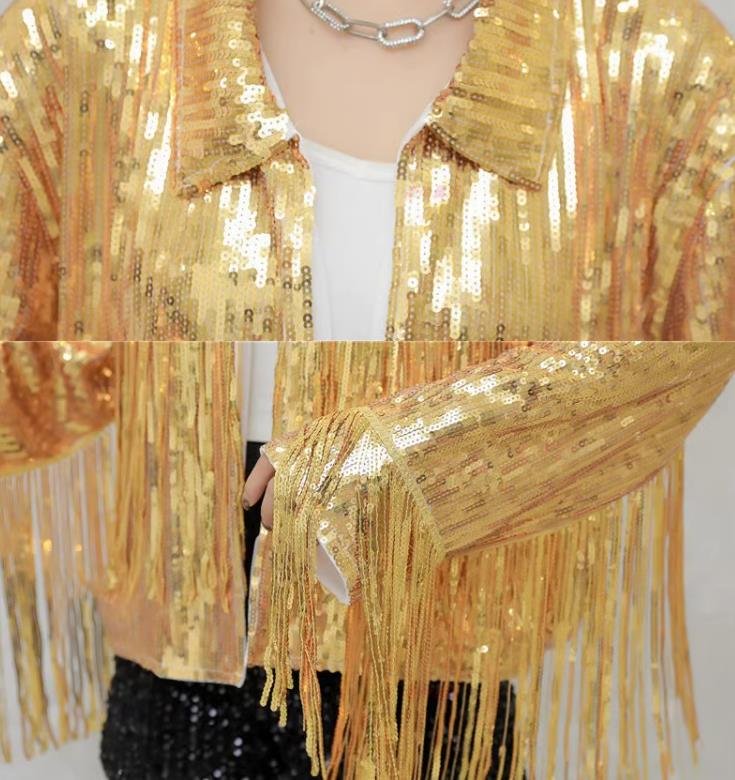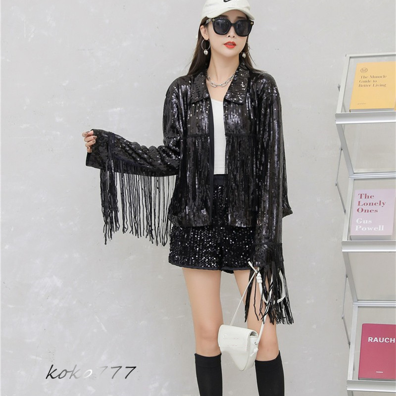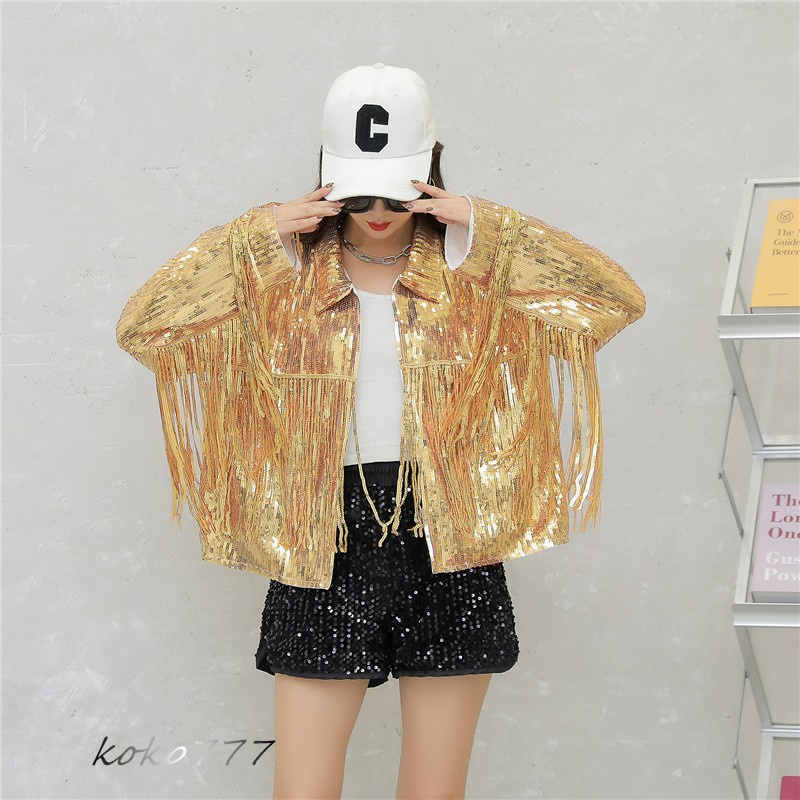 ジャケット レディースジャケット コート スパンフリンジ ダンスウェア ヒップホップ 部活 女子上着 チアガール 発表会 カジュアル 学園祭 アウター