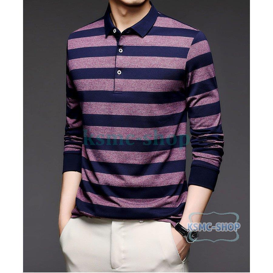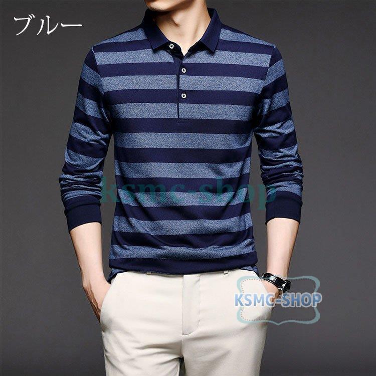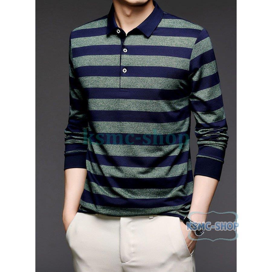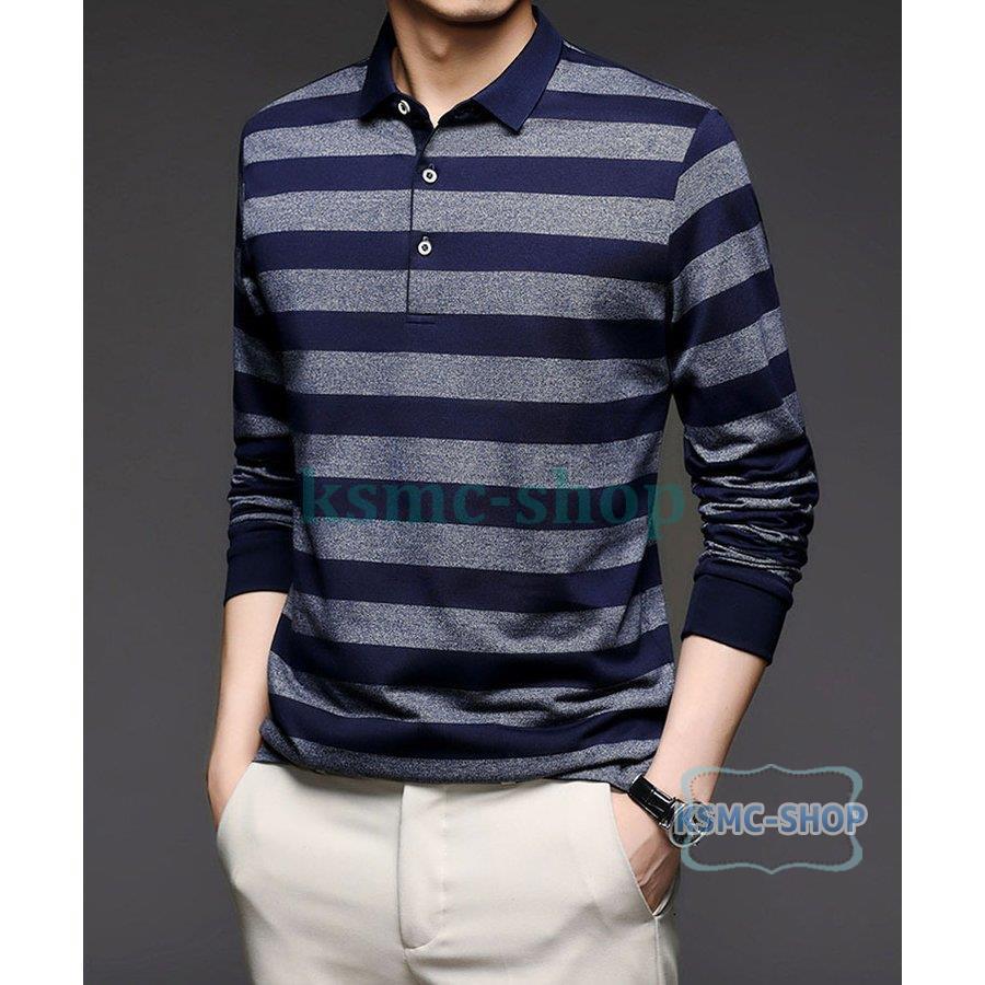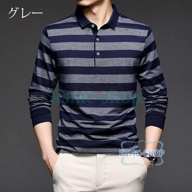 ポロシャツ メンズ トップス 大きいサイズ 長袖 ボーダー柄Tシャツ 春秋ゴルフシャツ スポーツ おしゃれ トレンド 紳士服 カジュアル ファッション ゴルフウェア