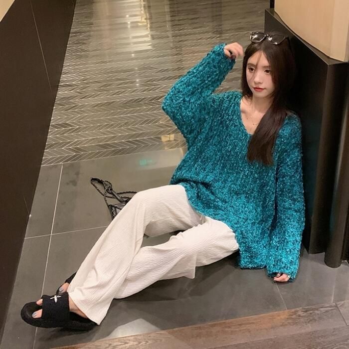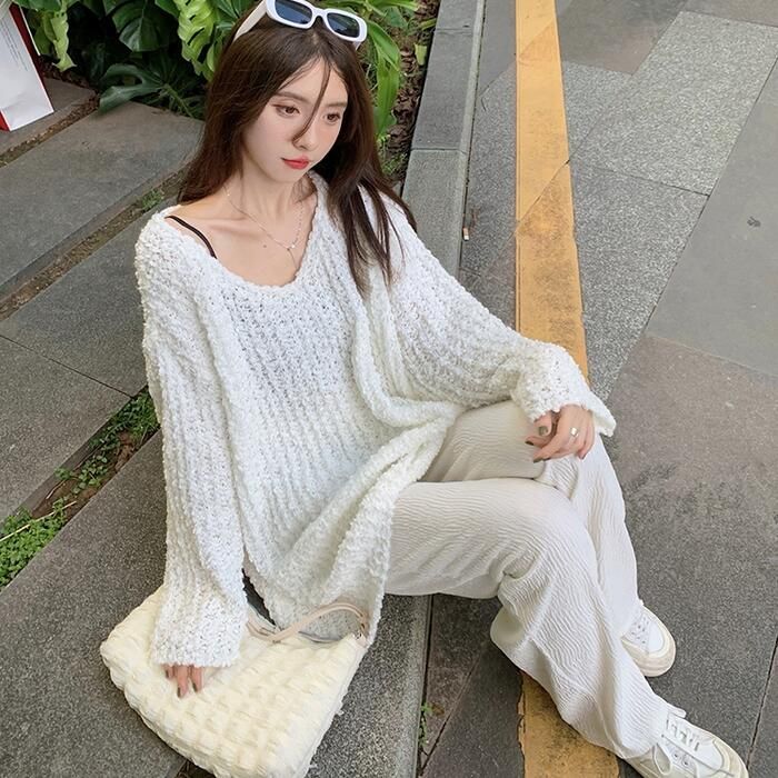 トップス ニット セーター ローゲージ レディース きれいめ ざっくり ルーズ シンプル 大人 カジュアル ゆったり オーバー おしゃれ 可愛い Vネック 体型カバー