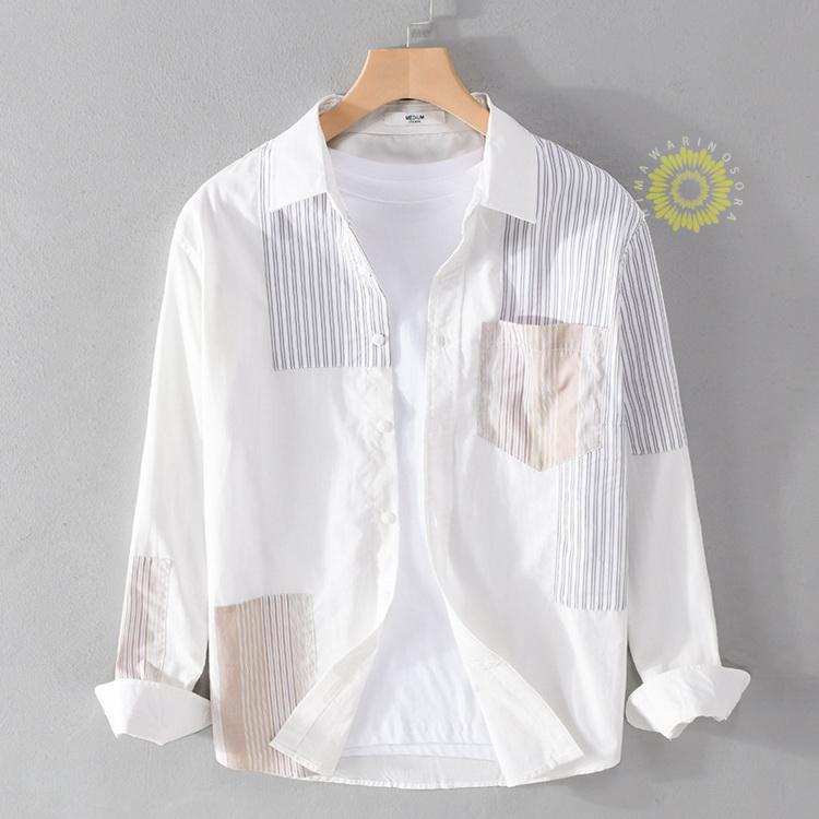 カジュアルシャツ メンズ シャツ トップス 長袖シャツ ストライプ 切り替え きれいめ