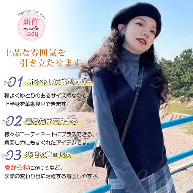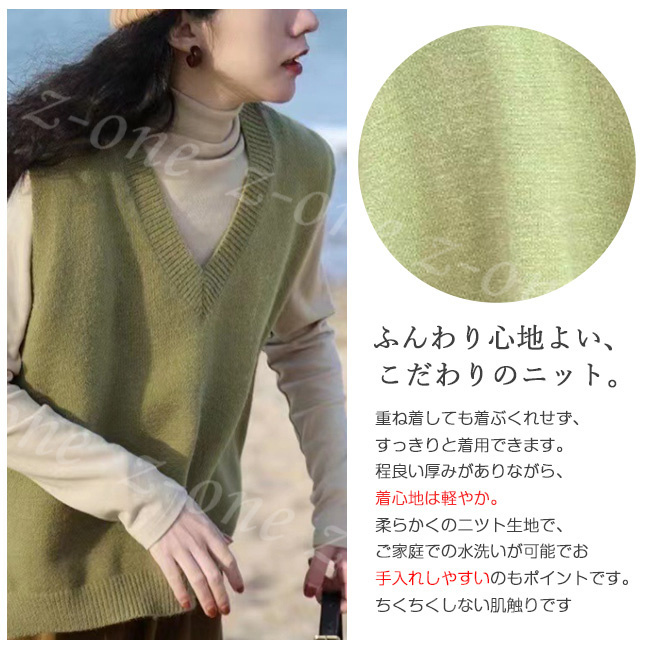 ベスト ニット プルオーバー レディース 新作 Vネック 大人 保温 可愛い レイヤード ゆったり 春 アウター 秋冬 柔らかい 体型カバー 通勤 セーター 学生 通学