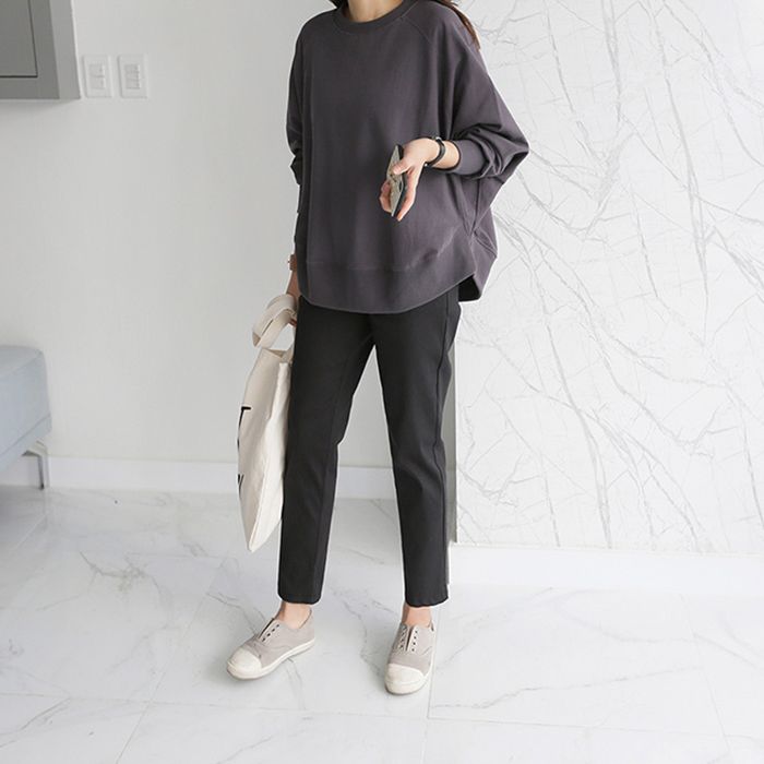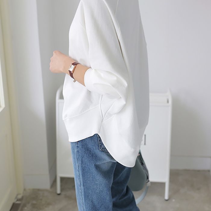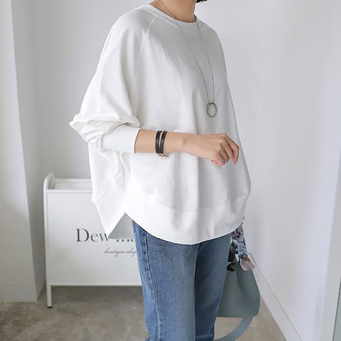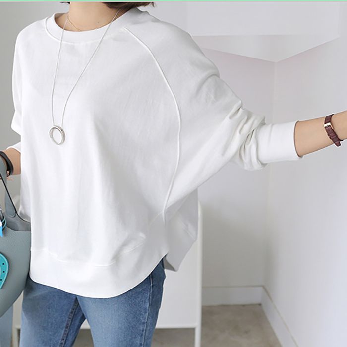 トップス レディース きれいめ カジュアル おしゃれ 薄手 コットン コーデ スエット ボリューム袖 ホワ 綿 長袖 ラウンドネック ルームウェア カットソー 韓国