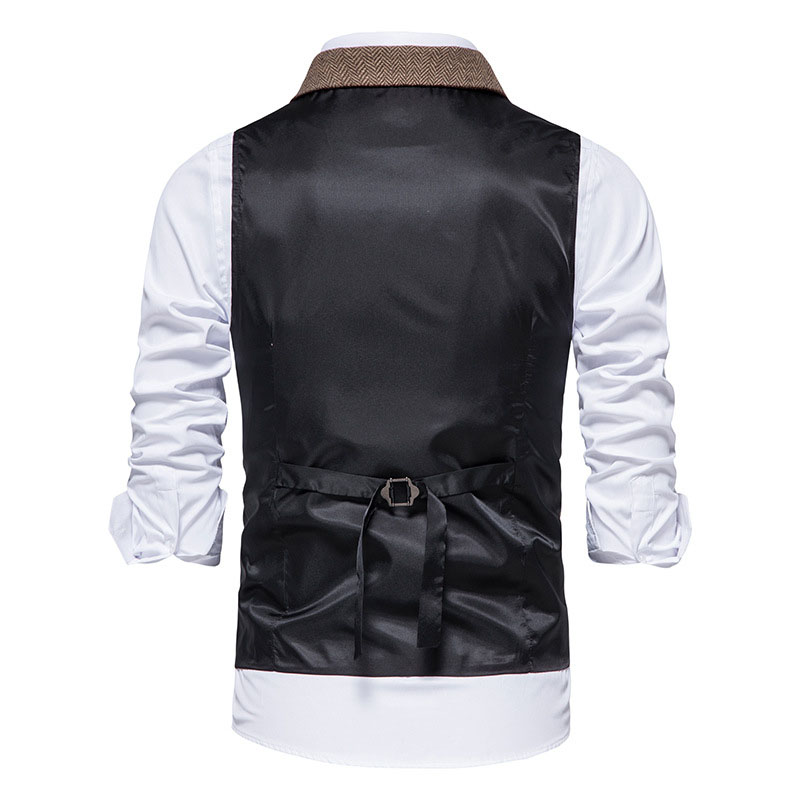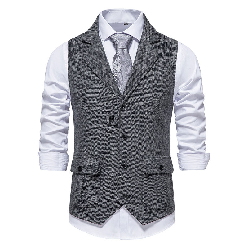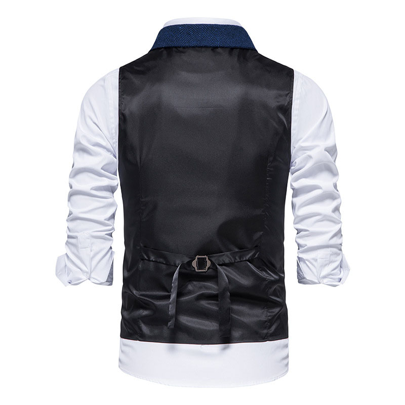 お手持ちのスーツやジャケットに合わせやすい、ドレスシャツや、カットソーでのベストスタイルも上品にきまります。