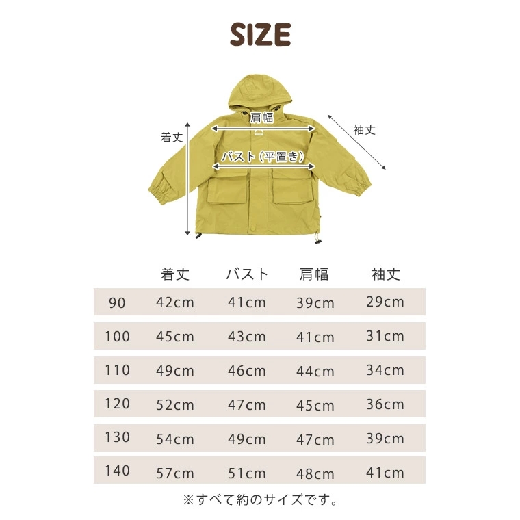 100CM:着丈45CM×ト43CM×肩幅41CM×袖丈31CM