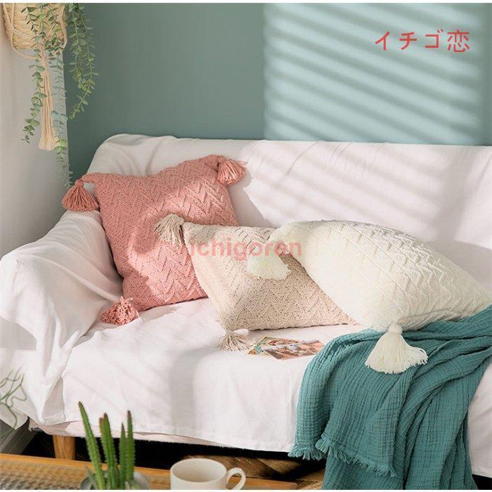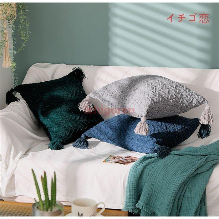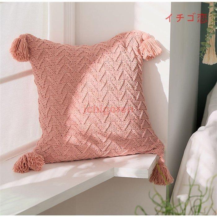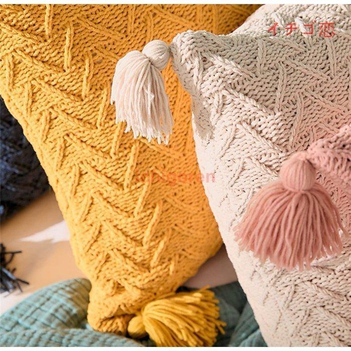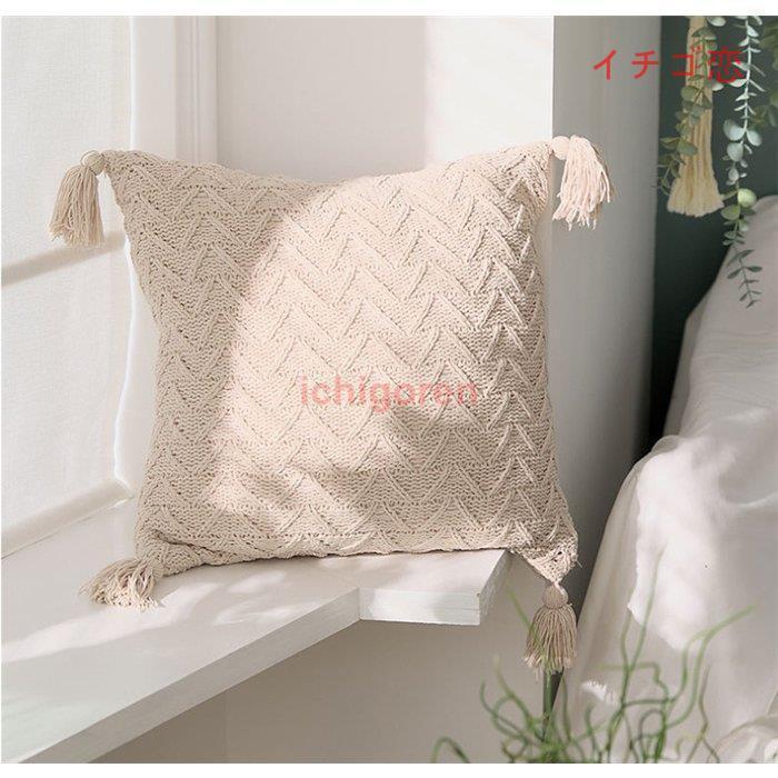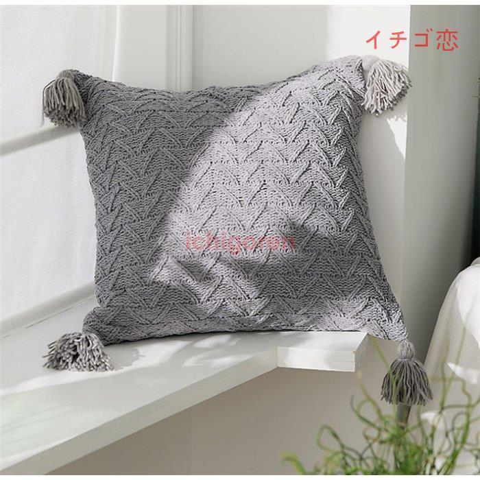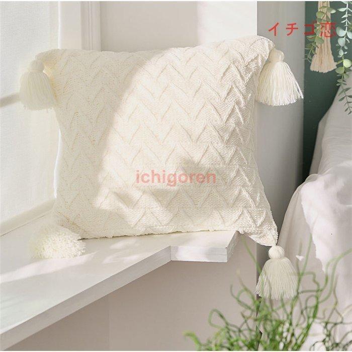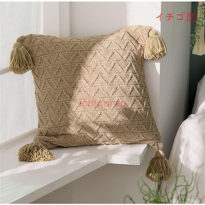 クッションカバー 北欧 フリンジ付き 45X45CM 可愛い ソファ背当て 座布団カバー 装飾枕カバー ファッション タッセル ニット 編み 高級感