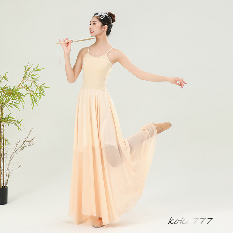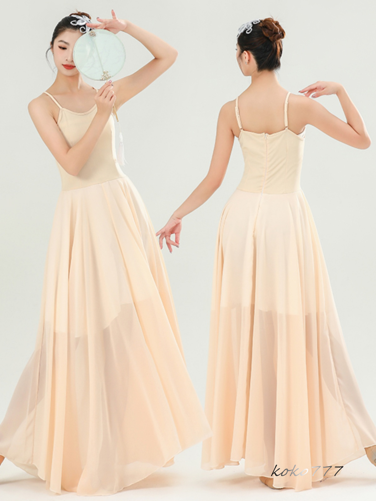 ワンピース レディース ロングドレス ダンスウエア ノースリーブ 踊り ライブ 練習着 コスチューム モダンダンス 発表会 舞台衣装 シフォン 部活 女子服 無地