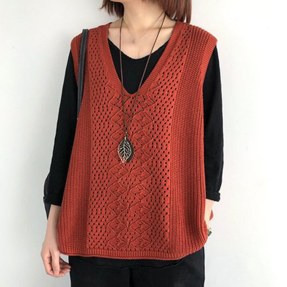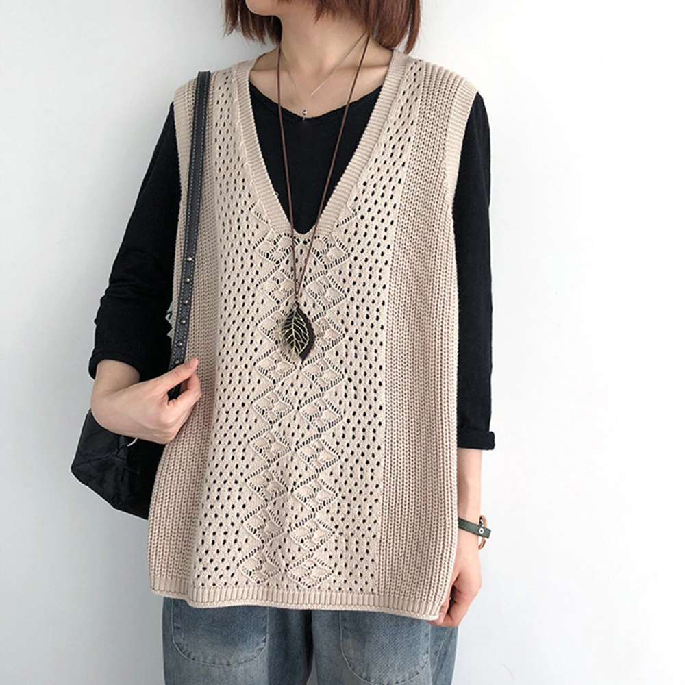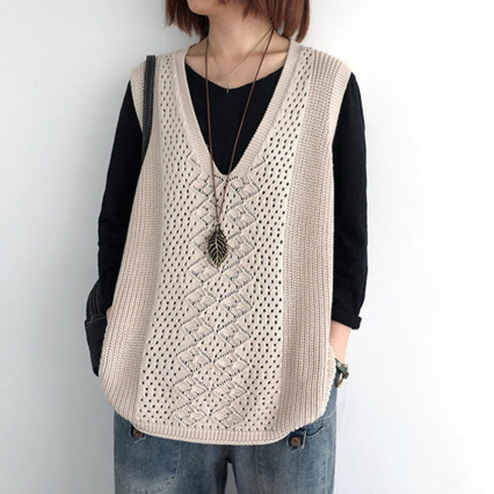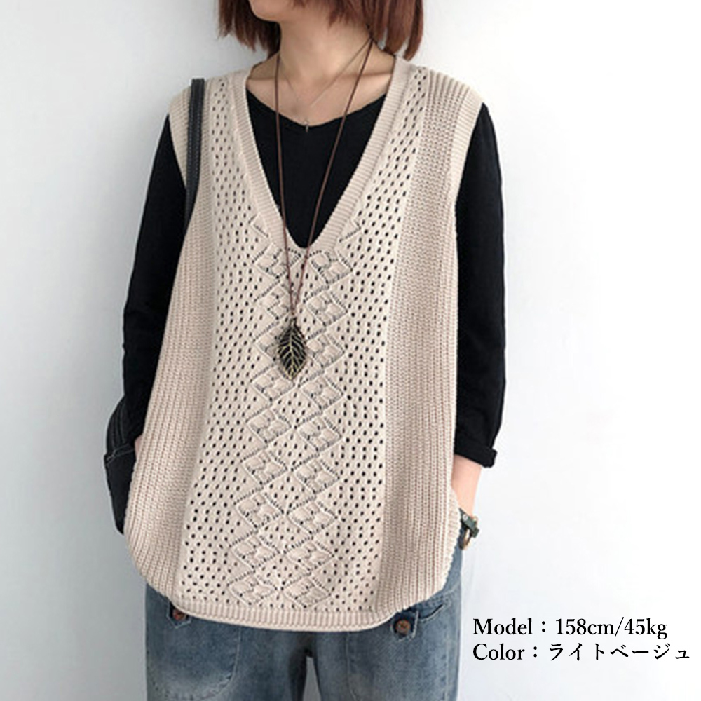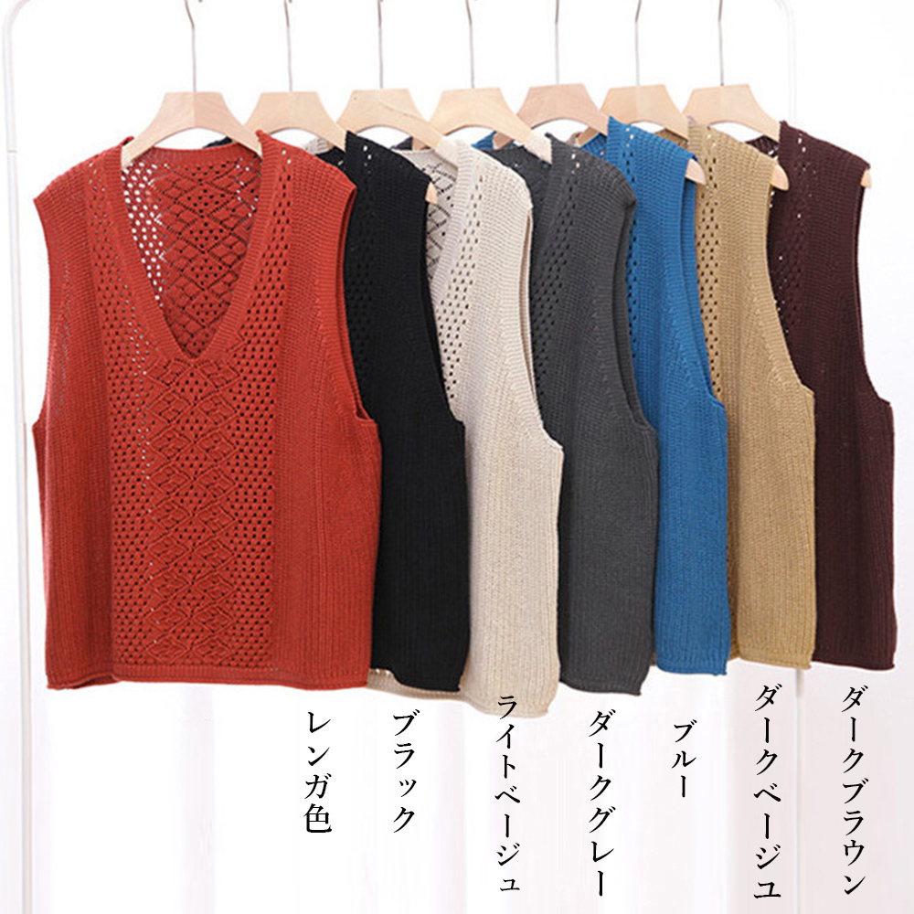 ノースリーブ ニットトップス Vネックプルオーバー レトロ カジュアル 無地ニットチョッキ 韓国 ベストセーター 重ね着