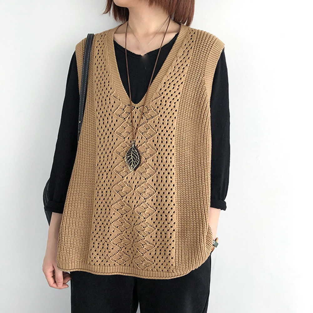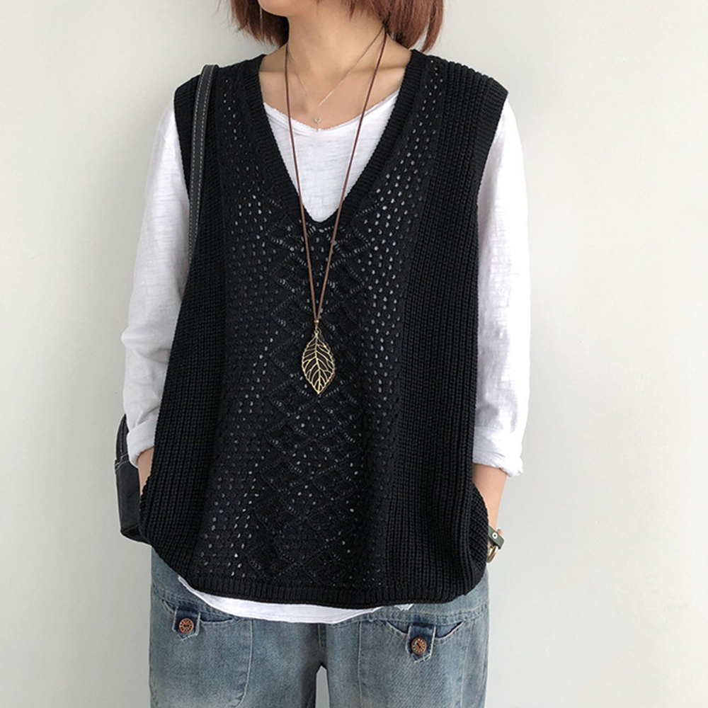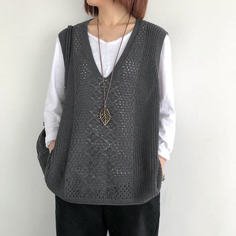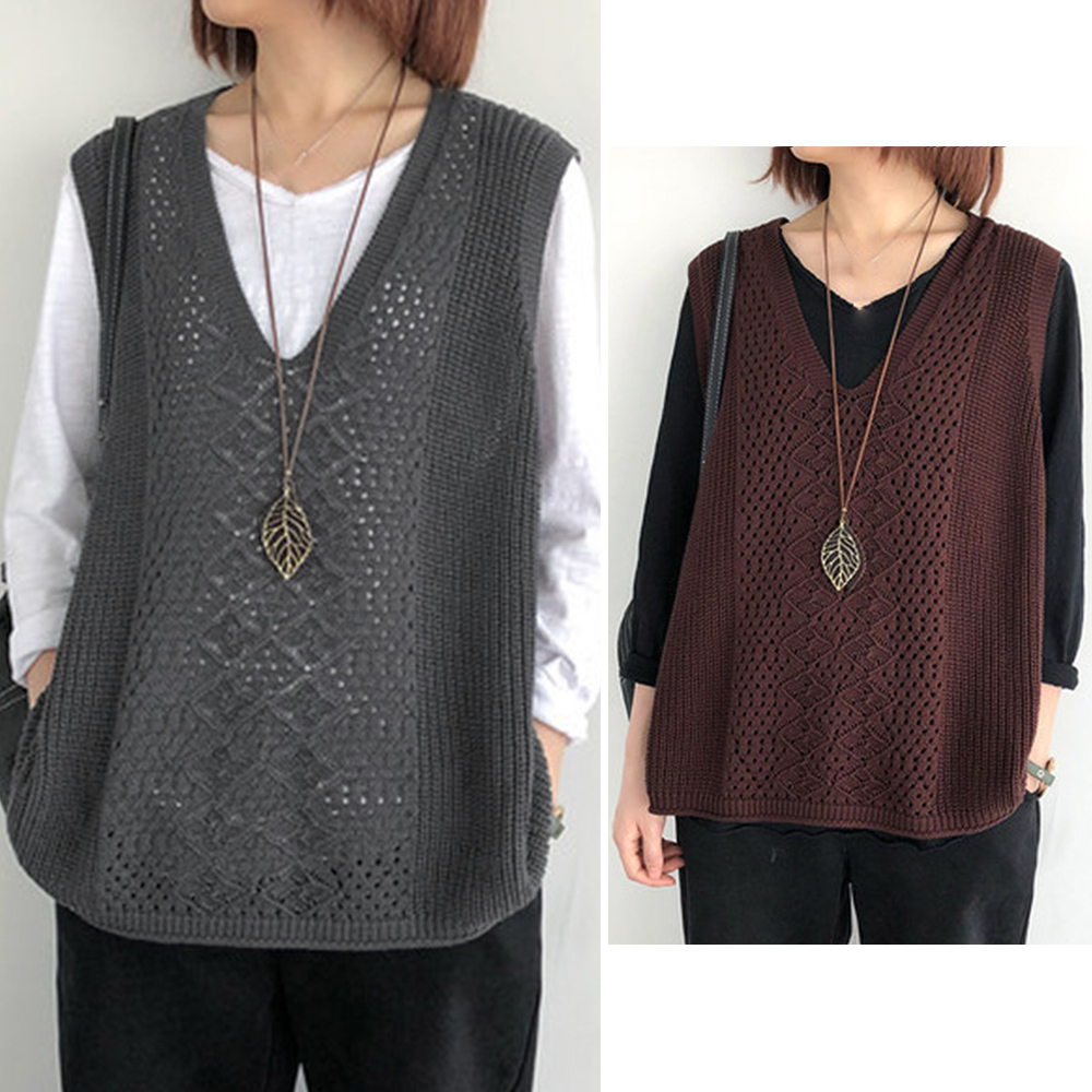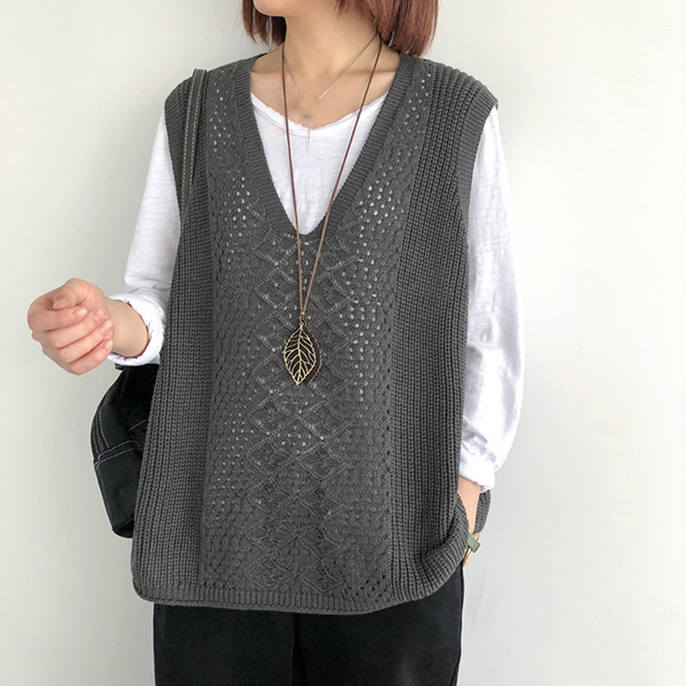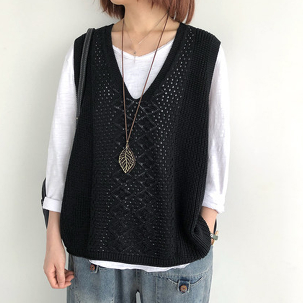 ノースリーブ ニットトップス Vネックプルオーバー レトロ カジュアル 無地ニットチョッキ 韓国 ベストセーター 重ね着