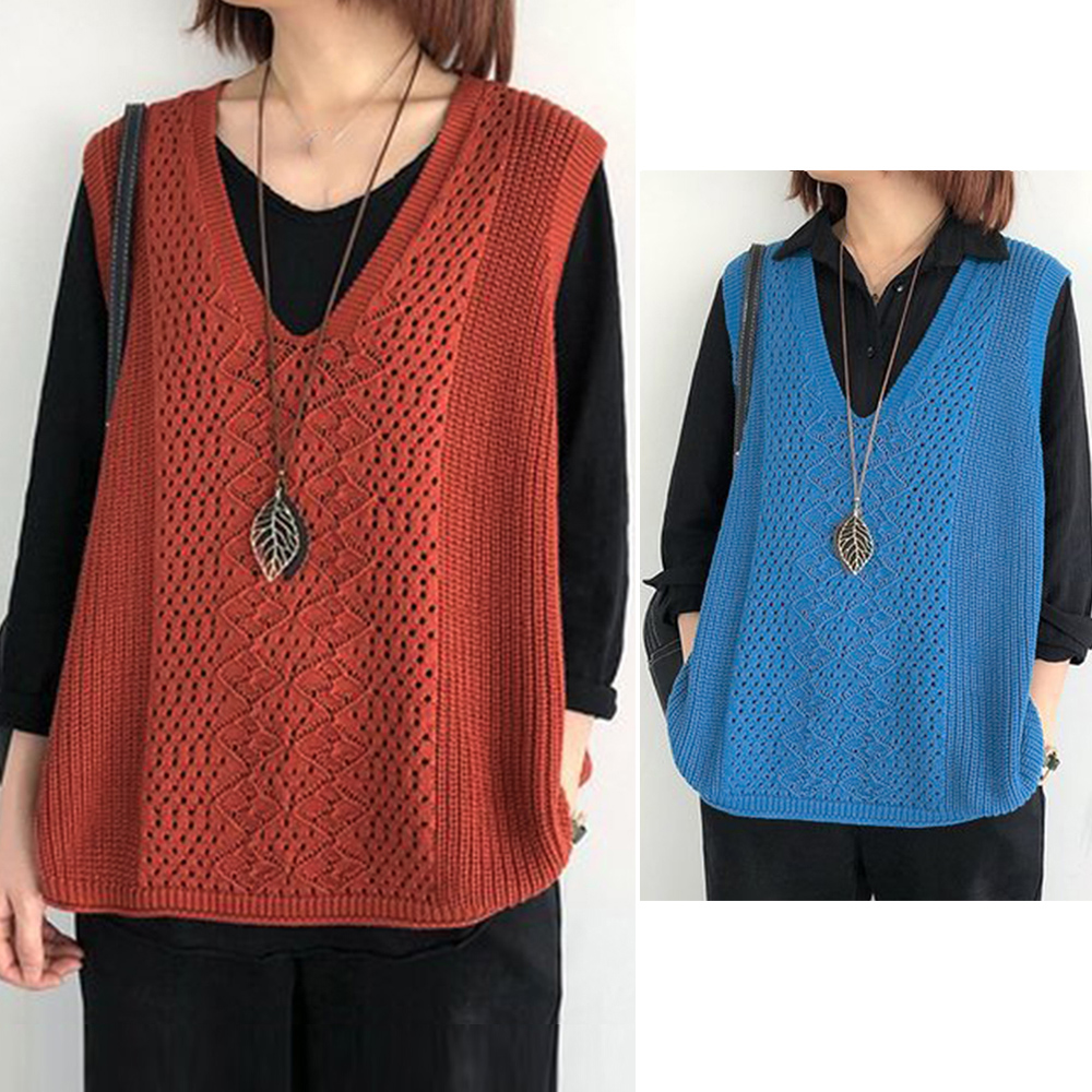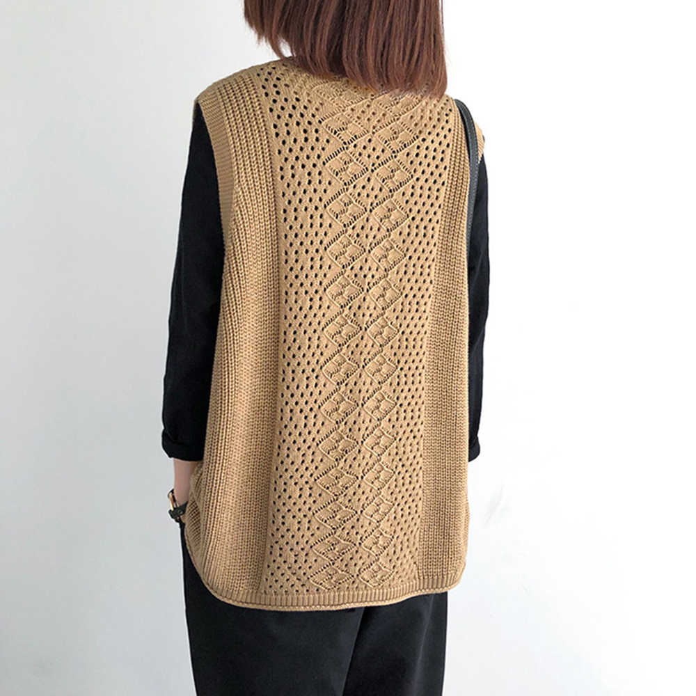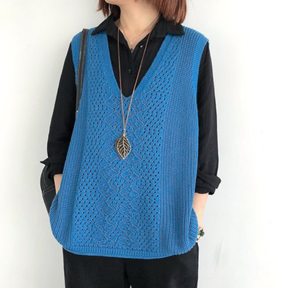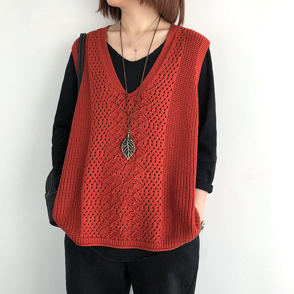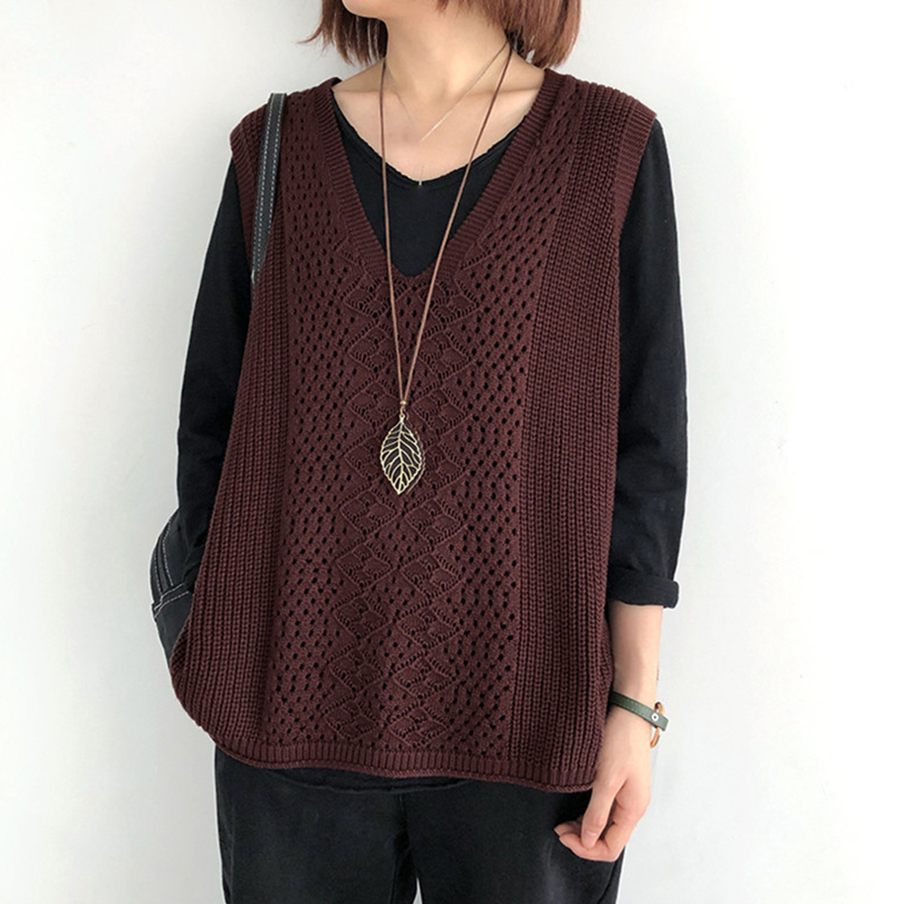 ノースリーブ ニットトップス Vネックプルオーバー レトロ カジュアル 無地ニットチョッキ 韓国 ベストセーター 重ね着