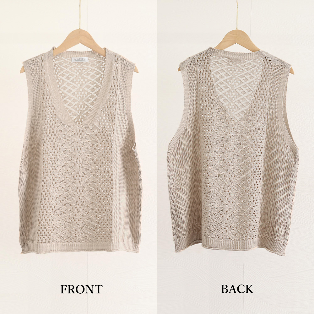 透かし編みのディテールが、秋のシーズンに優しく降りそそぐ光を透過させ、上品さを演出