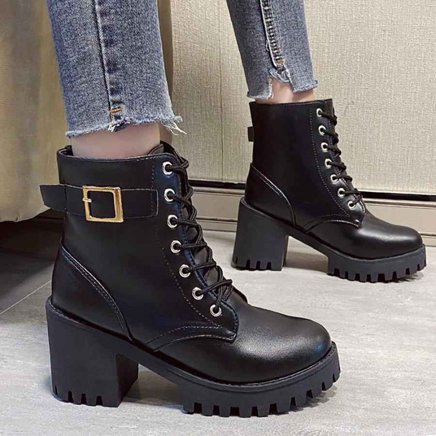 レースアップブーツ 靴 ミドルブーツ ワークブーツ 通勤 OL 秋冬 編み上げ 美脚 歩きやすい