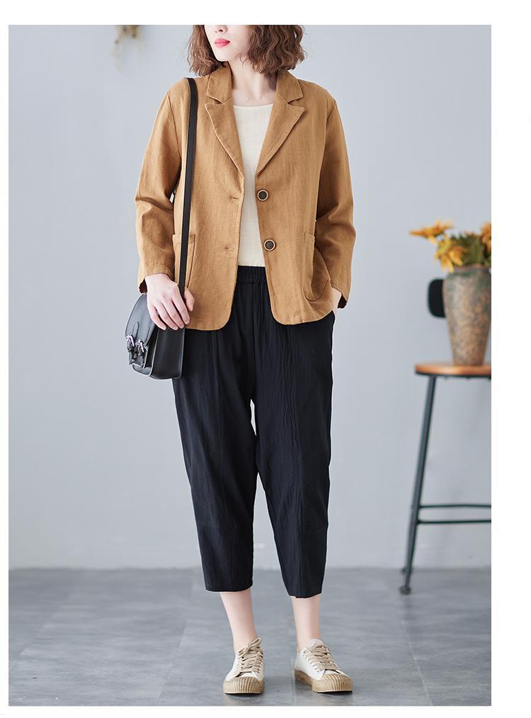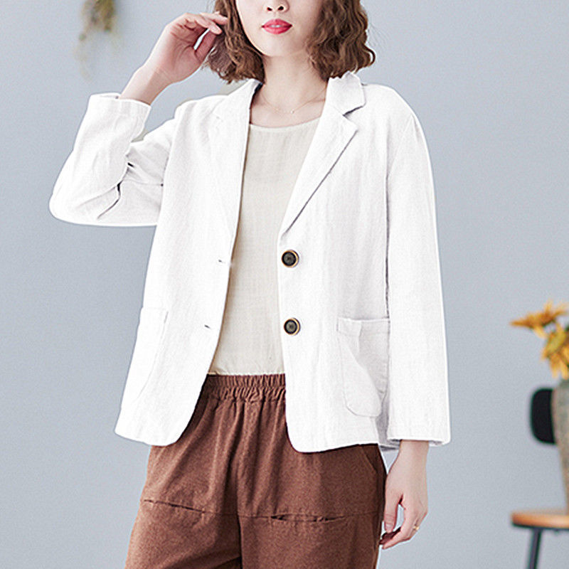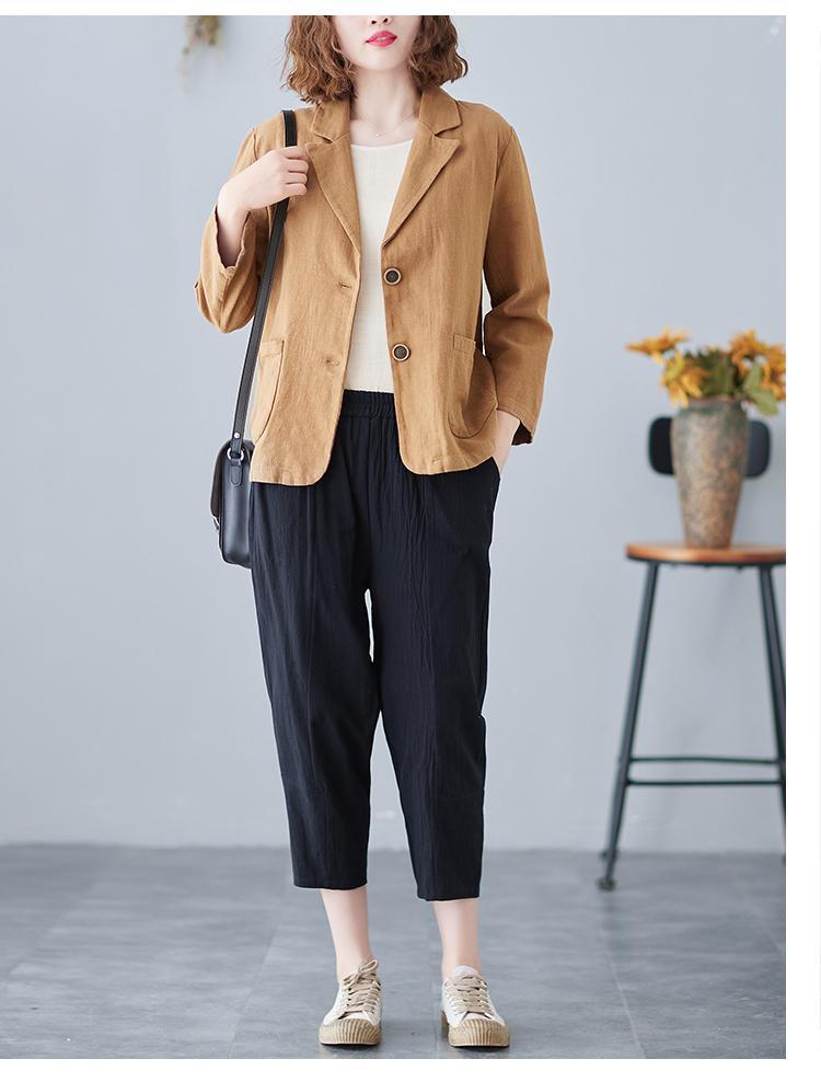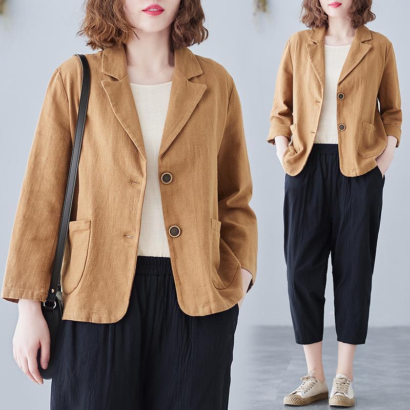 レディース 綿麻 テーラードジャケット 春秋 カジュアル 無地 普段着 ジャケット リネン キレイめ ゆったり 通勤 お洒落 体型カバー 薄手 長袖