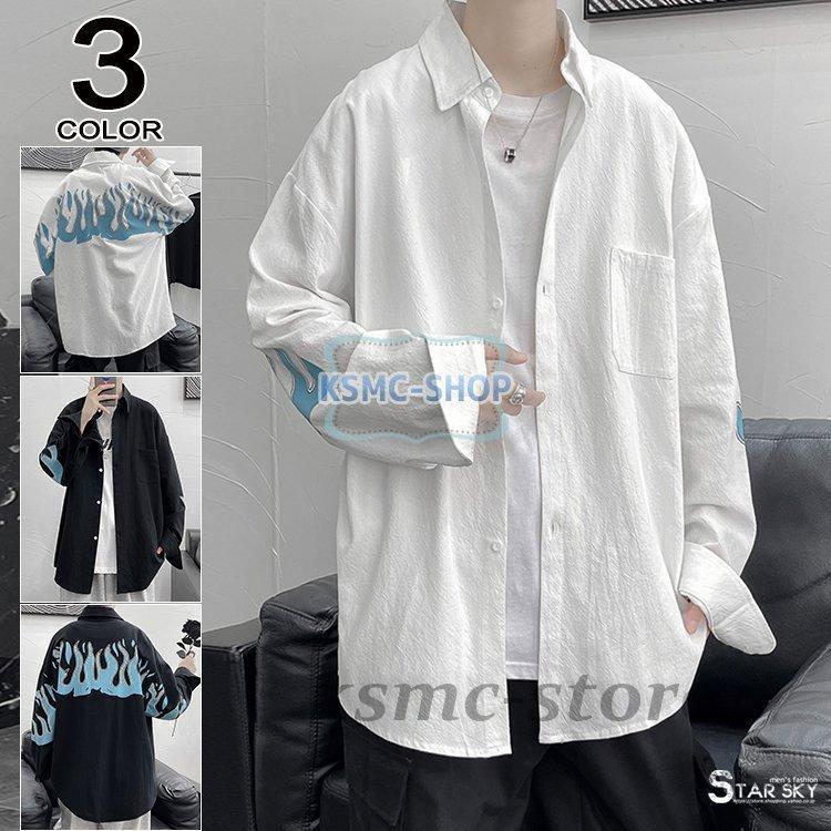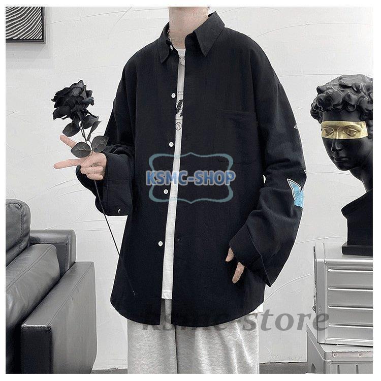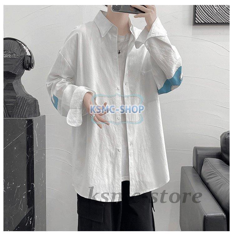 長袖シャツ メンズ おしゃれ ゆったりシャツ ポッケト付き カジュアルシャツ 個性 開襟シャツ 通学 春秋