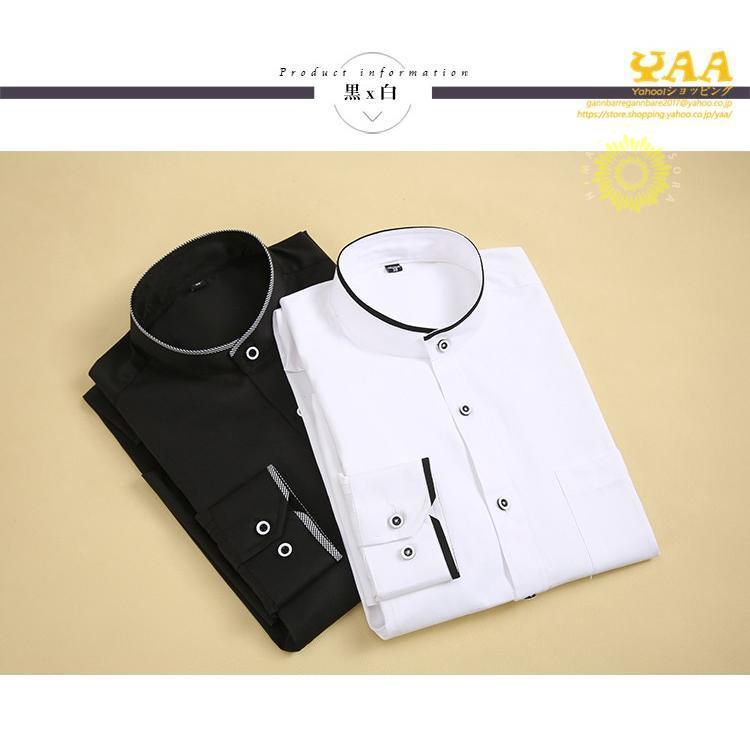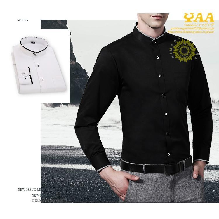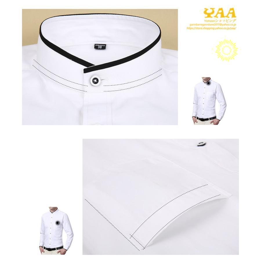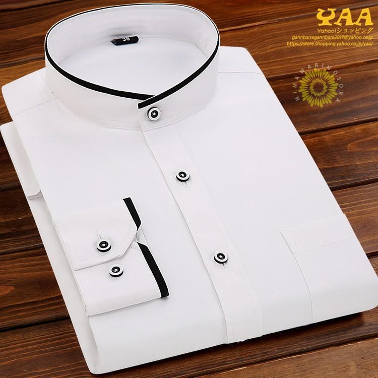 スタンドカラーシャツ メンズ シャツ 長袖シャツ 白シャツ ホワイトシャツ 立ち襟 ビジネスカジュアル スリム 紳士 男性用 40代 50代 春夏 春物