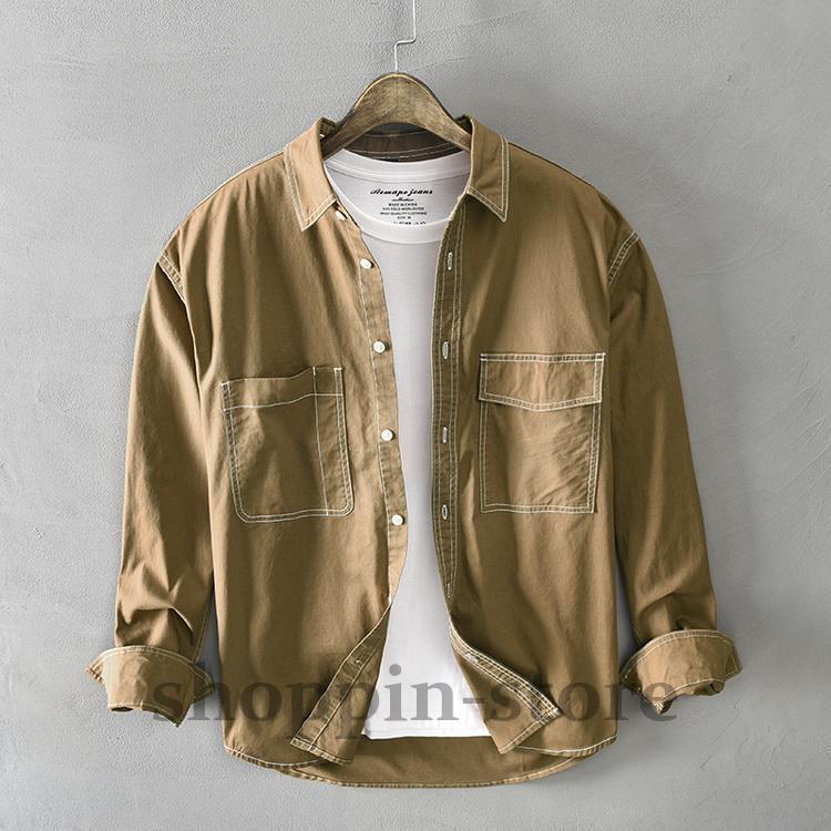 ワークシャツ アメカジ カジュアルシャツ メンズ シャツ トップス 長袖 100%綿 ミリタリーファッション