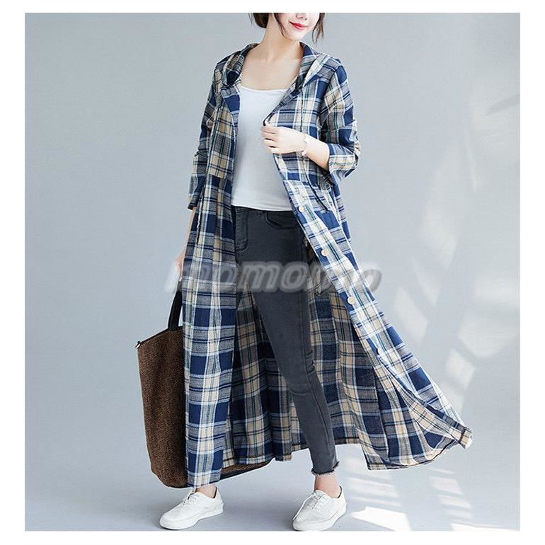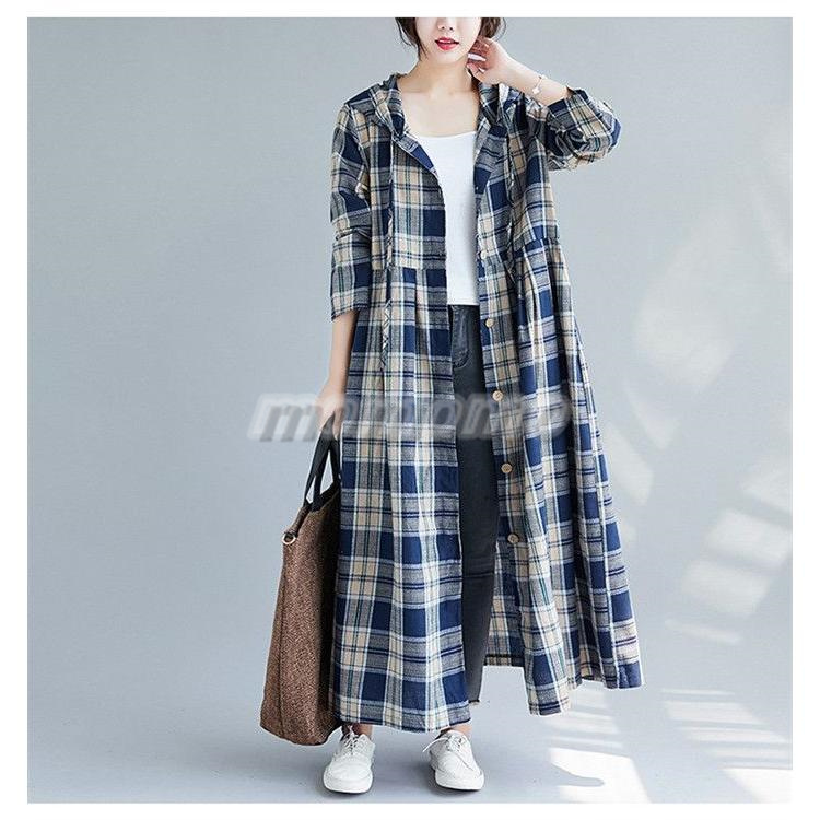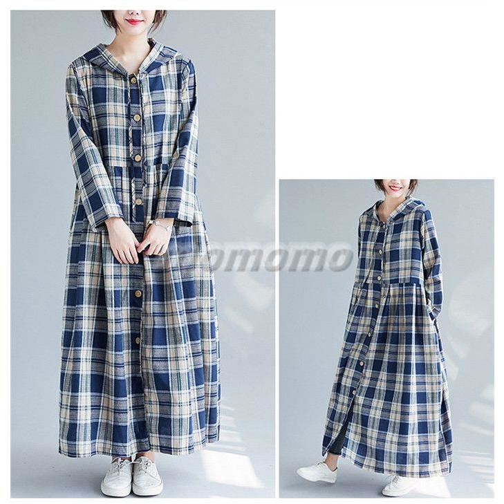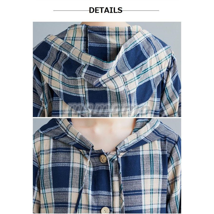 シャツワンピース チェック ワンピース パーカーワンピ フード付き レディース ゆったり 体型カバ ゆったり マキシワンピース 大きいサイズ 長袖