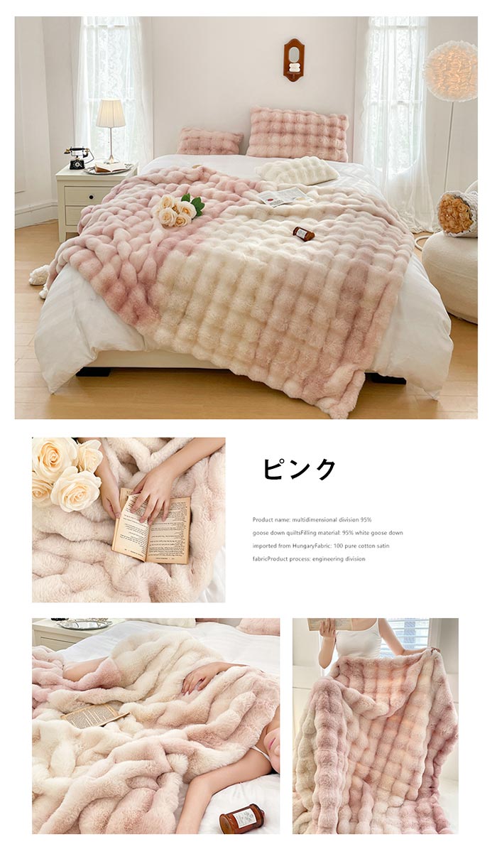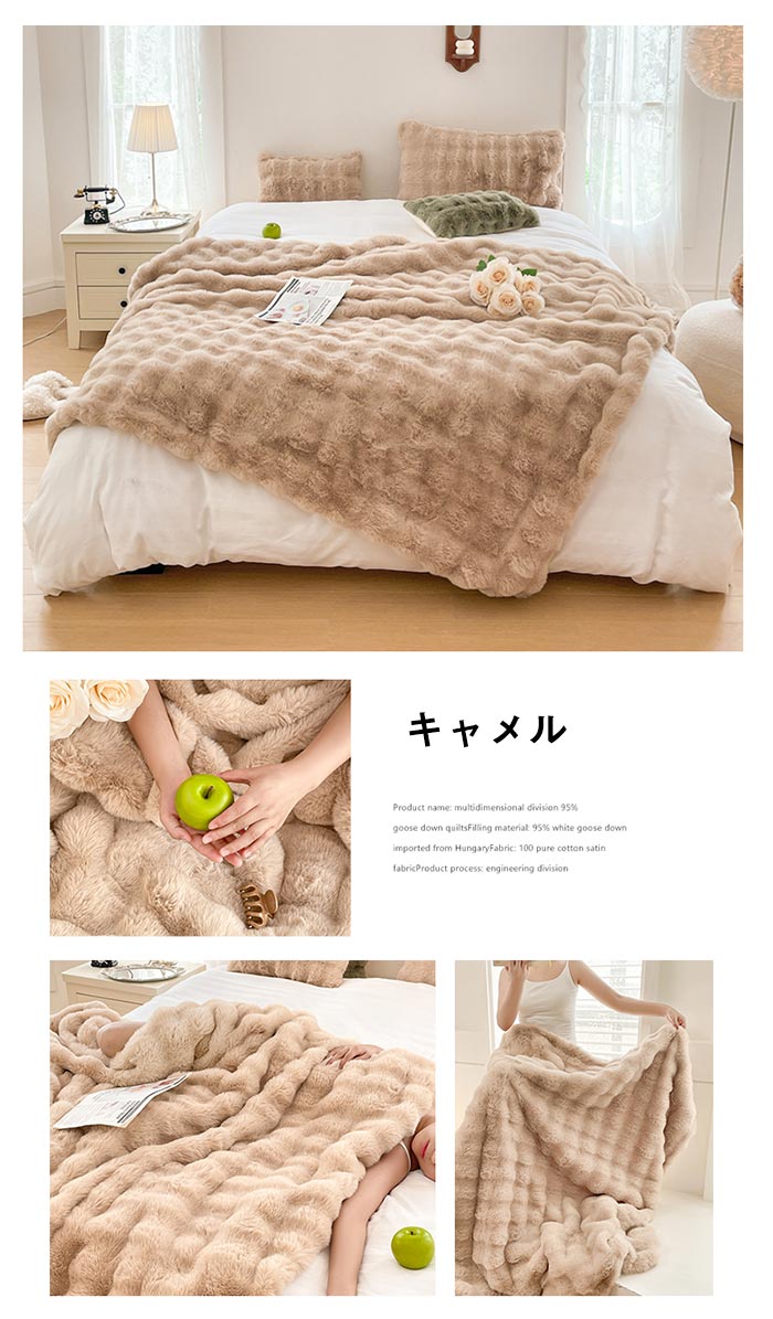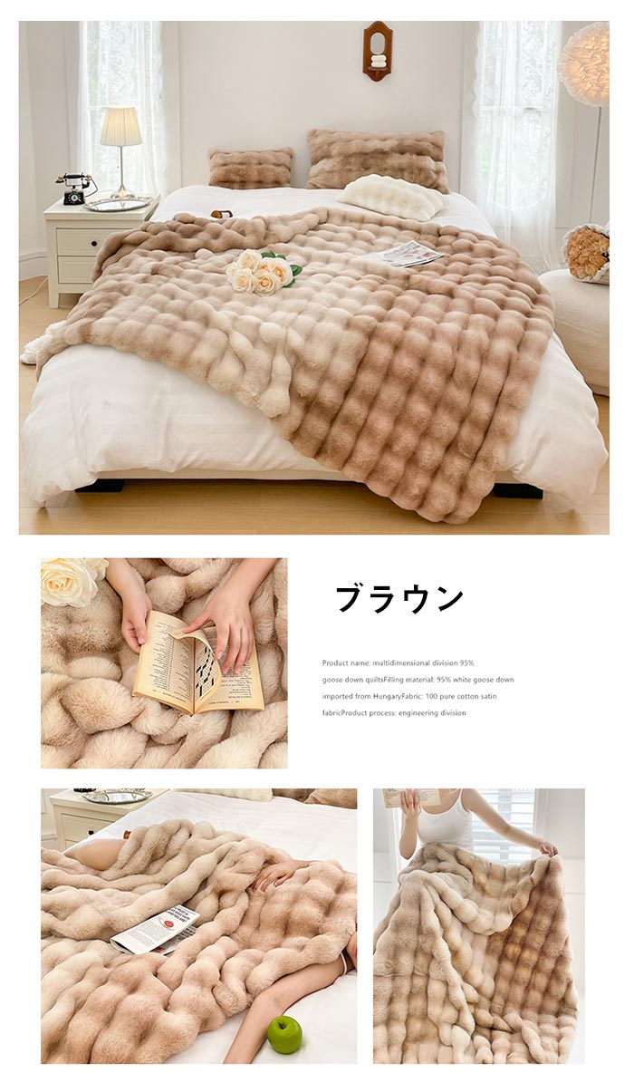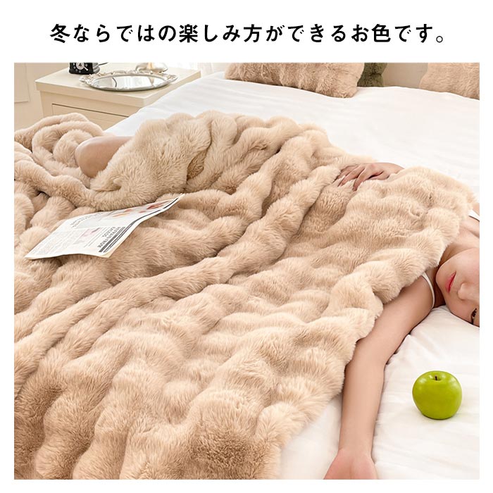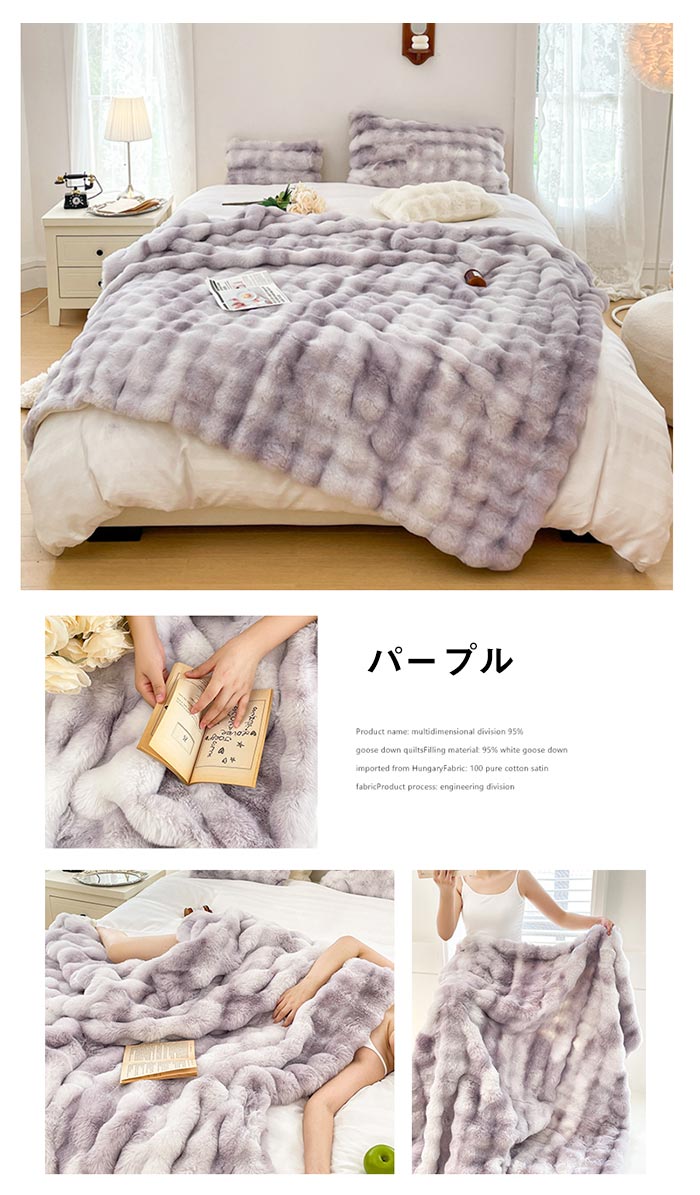 ラビットファー調 ブランケット 毛布 3サイズ 手触りいい オールシーズン 寝具 もこもこ 暖かい 吸湿発熱 冬 通気性いい 秋 ひざ掛け