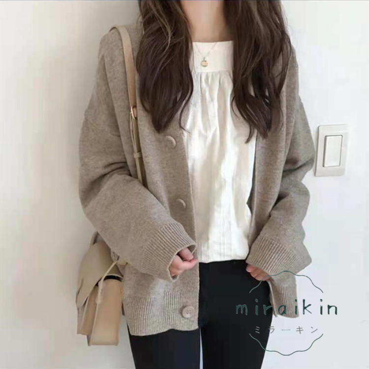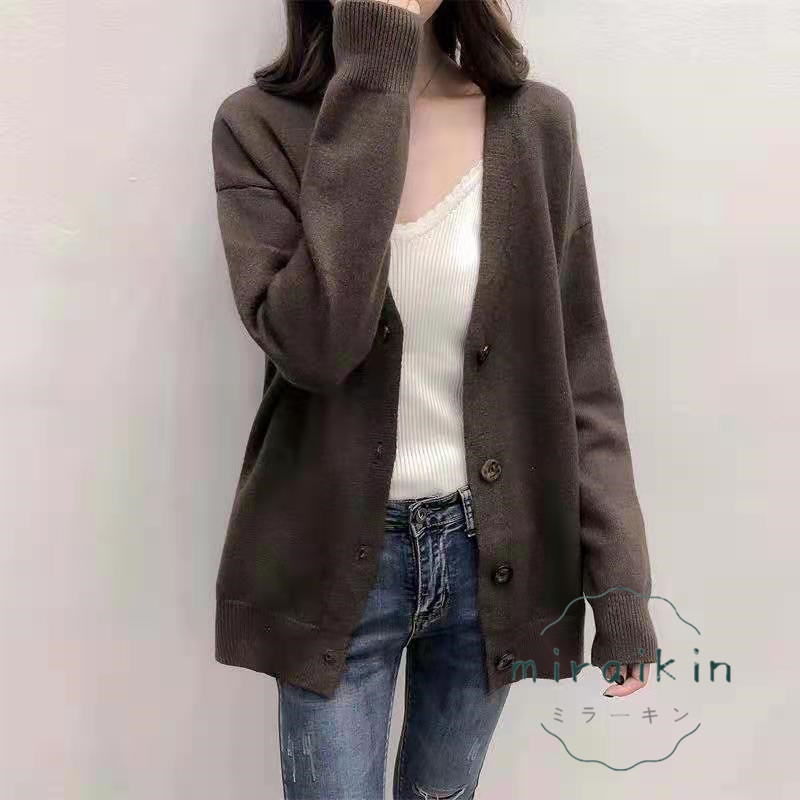ニットカーディガン 送料無料 秋冬新作 レディース セーター トップス 長袖 無地 ボタン ビッグシルエット オーバーサイズ 韓国ファッション ルーム 韓国風
