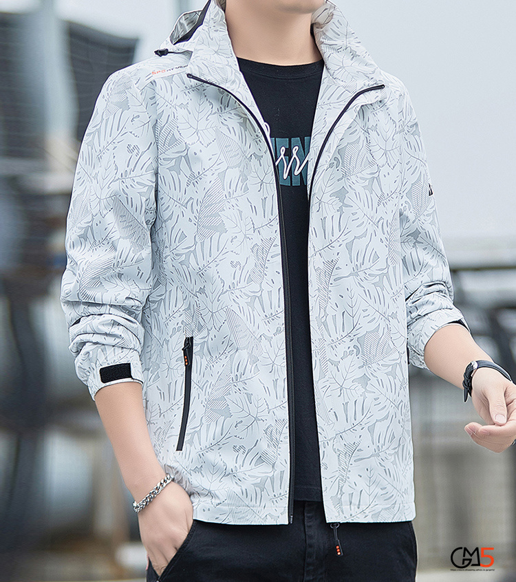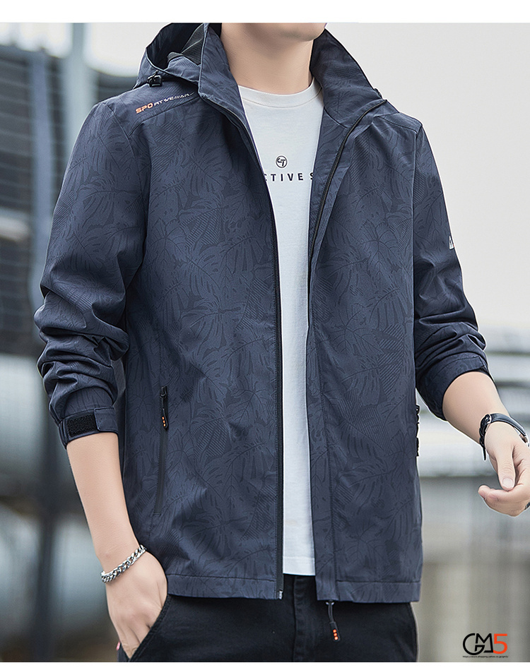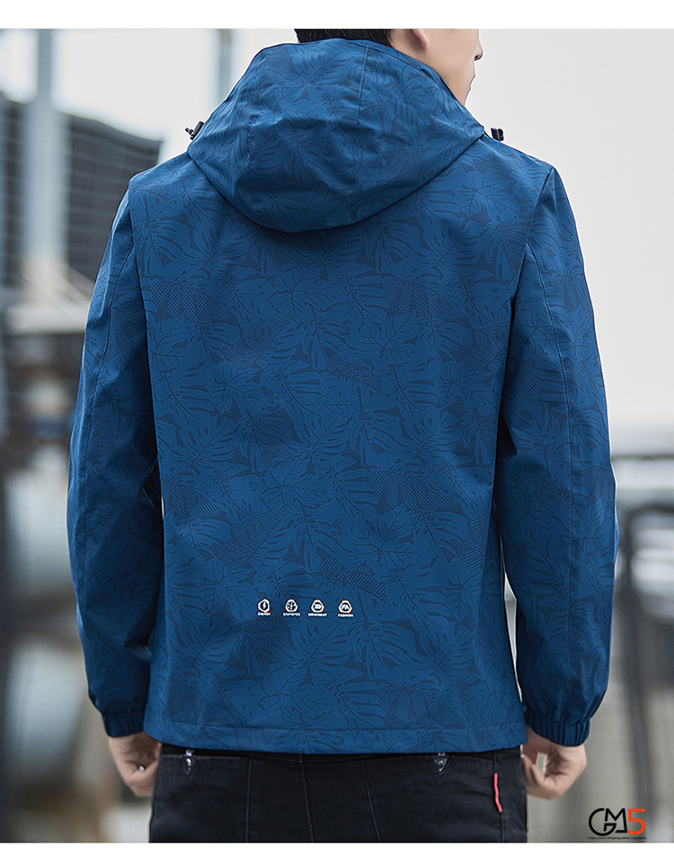 メンズ防水 マウンテン葉柄 植物柄 ジャケット ジッパーポケット スポーツ 大きいサイズ秋服 アウター 運動着