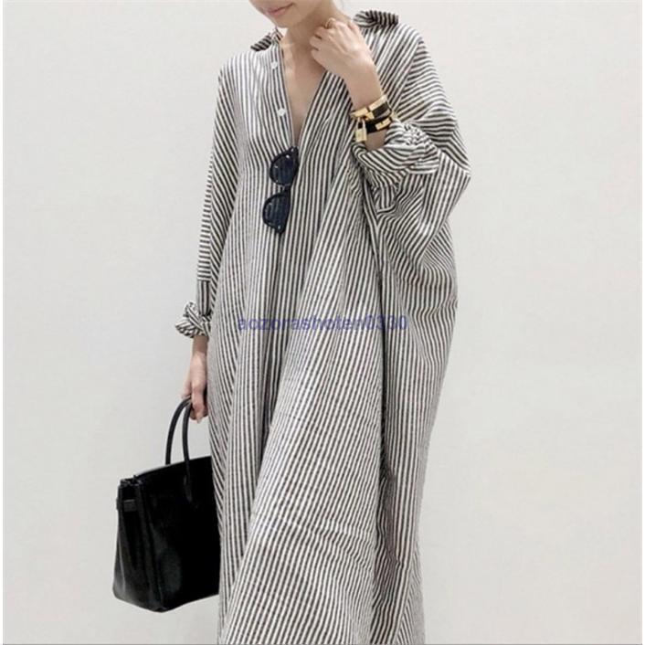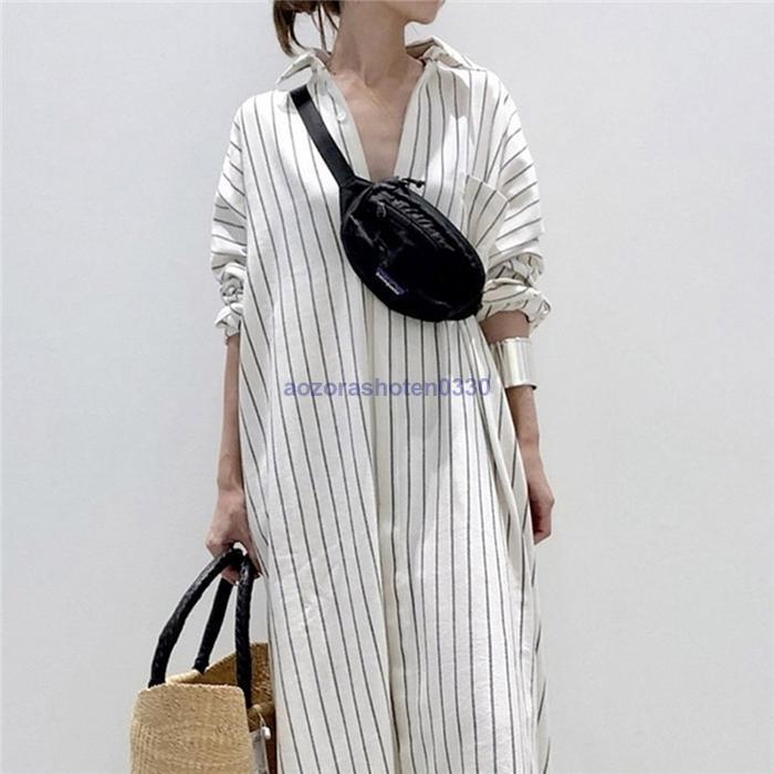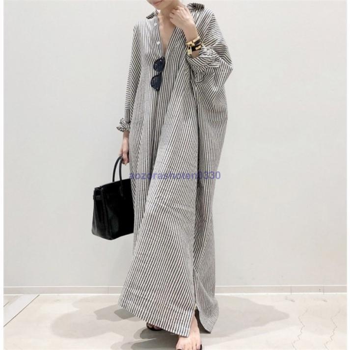 キーワード シャツワンピース ワンピース レディース ロングワンピース ロングシャツワンピース ゆるっとワンピース 長袖 超ロング ロング丈 マキシ丈 長袖 体型カバー ストライプ柄 ゆったり シンプル ロングワンピ 着痩せ 20代 30代 40代 50代 着回し ロングシャツワンピース