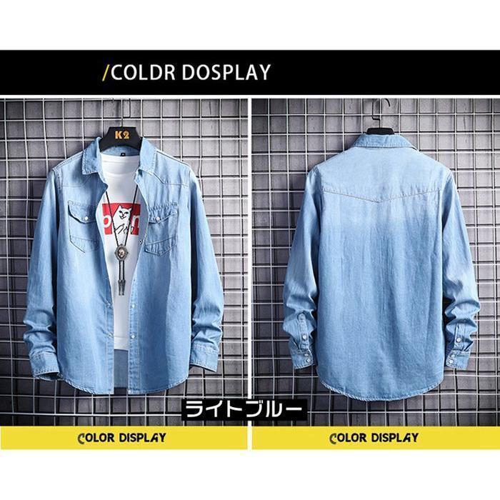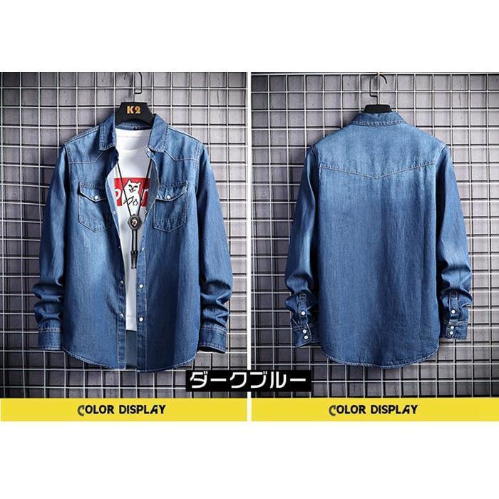 デニムシャツ ウエスタンシャツ メンズ シャツ カジュアルシャツ 長袖 アウター トップス カジュアル シンプル オシャレ 通学 ファッション 春 秋