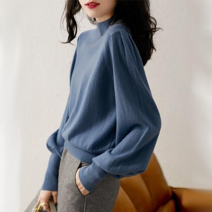 パフスリーブ トップス ニット セーター レディース エレきれいめ ブラウン 秋 ブルー ベージュ 大人 おしゃれ 黒 春 可愛い 長袖 ブラック カジュアル