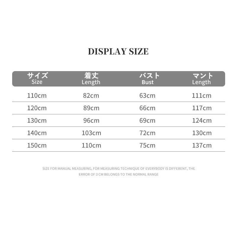 サイズ 110CM 120CM 130CM 140CM 150CM