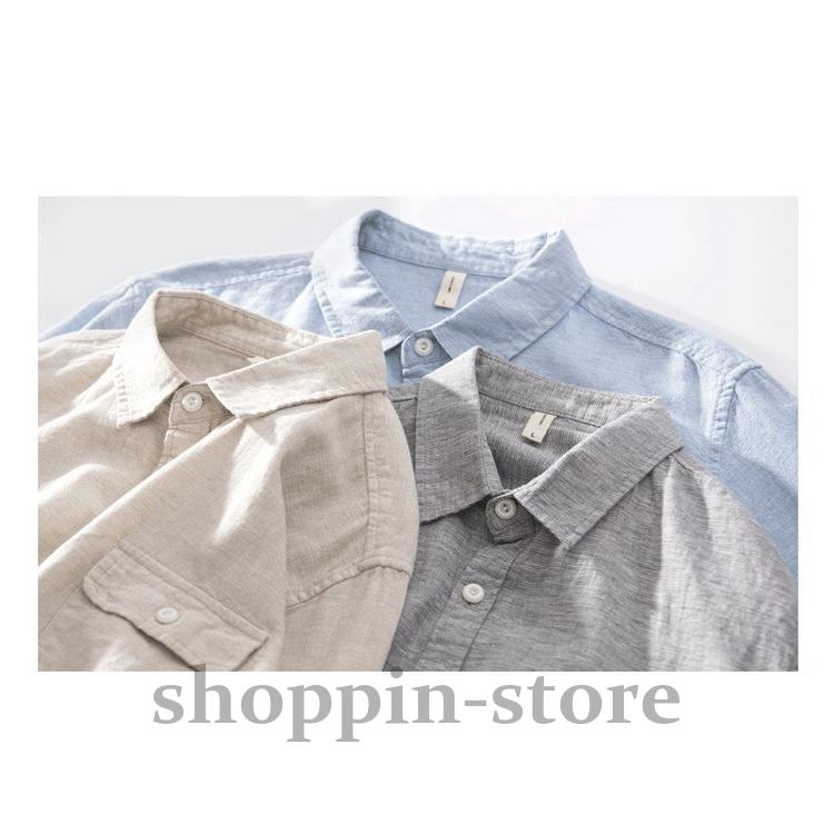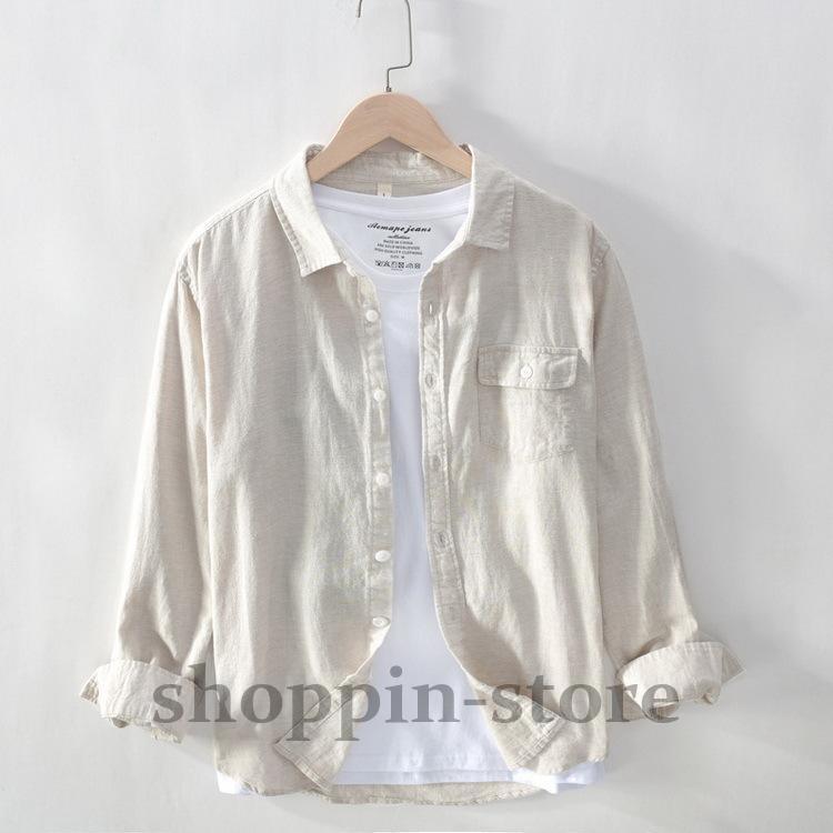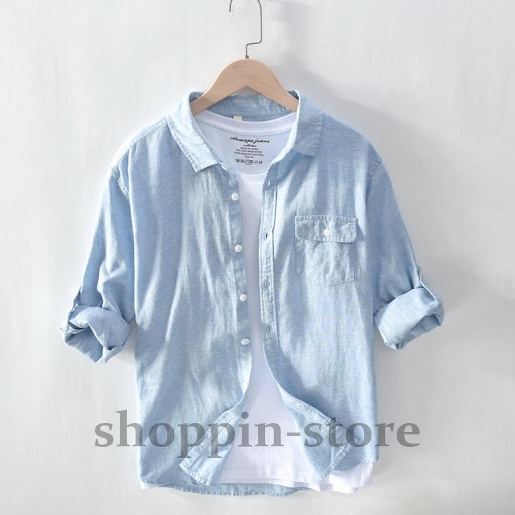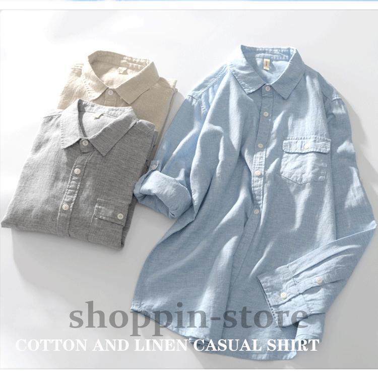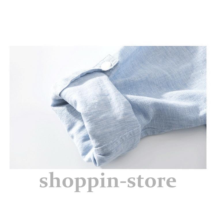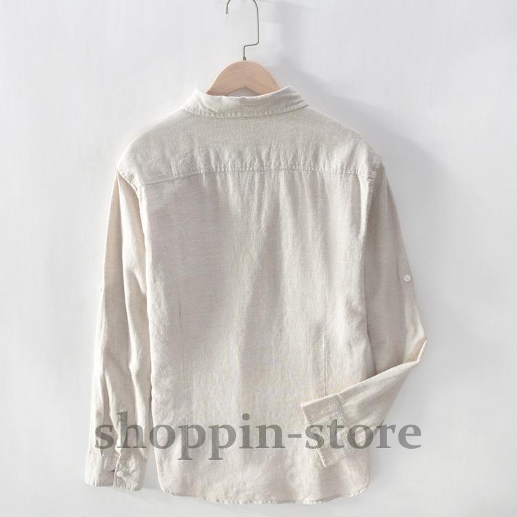 リネンコットンシャツ 綿麻シャツ カジュアルシャツ メンズ ロールアップシャツ トップス 長袖