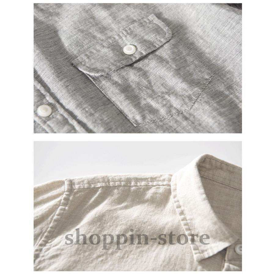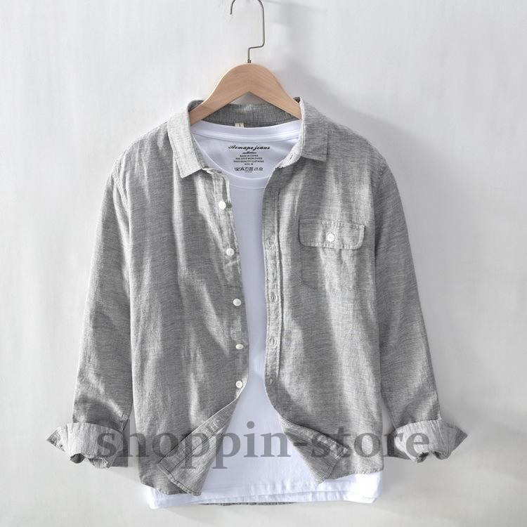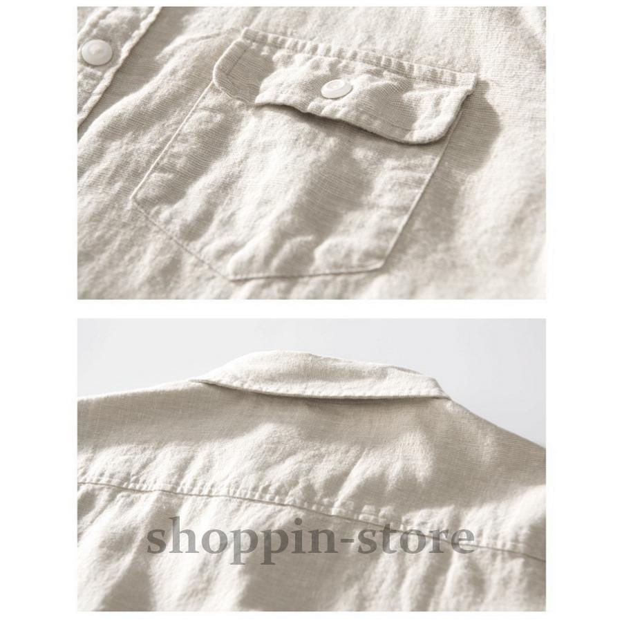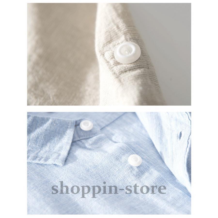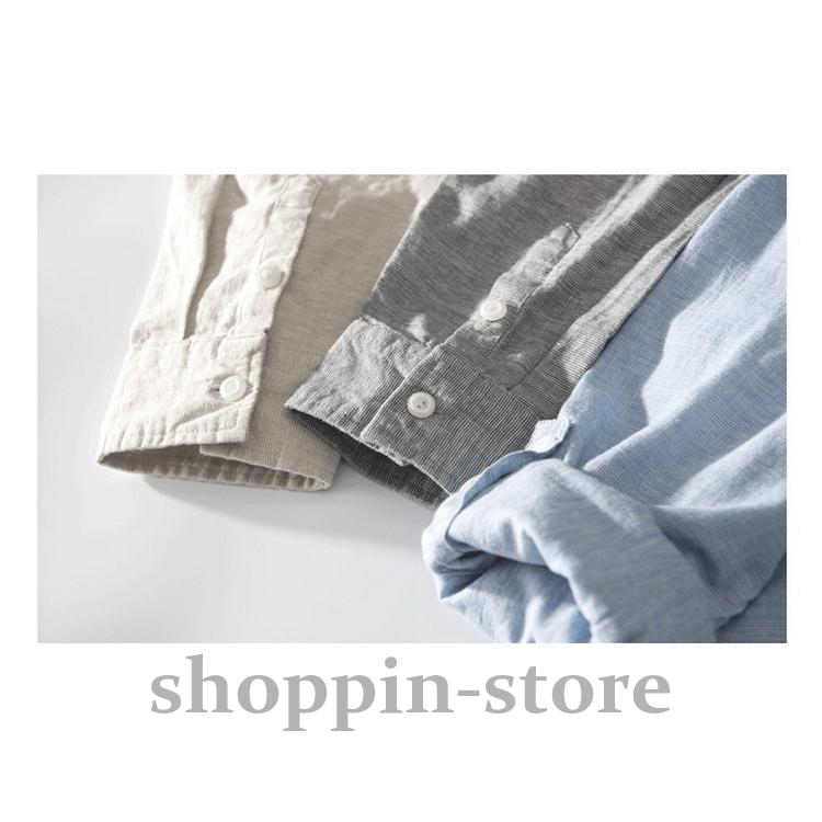 リネンコットンシャツ 綿麻シャツ カジュアルシャツ メンズ ロールアップシャツ トップス 長袖
