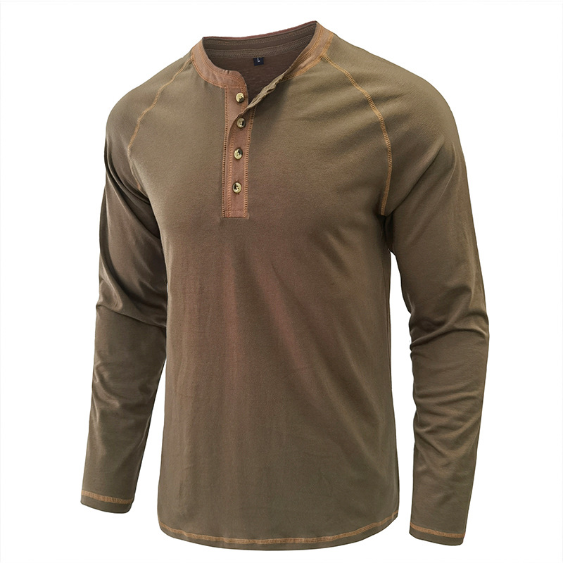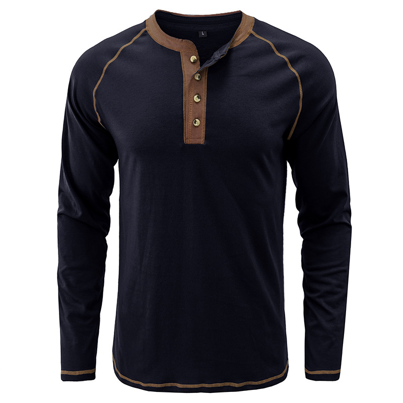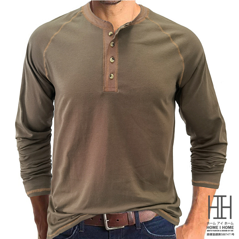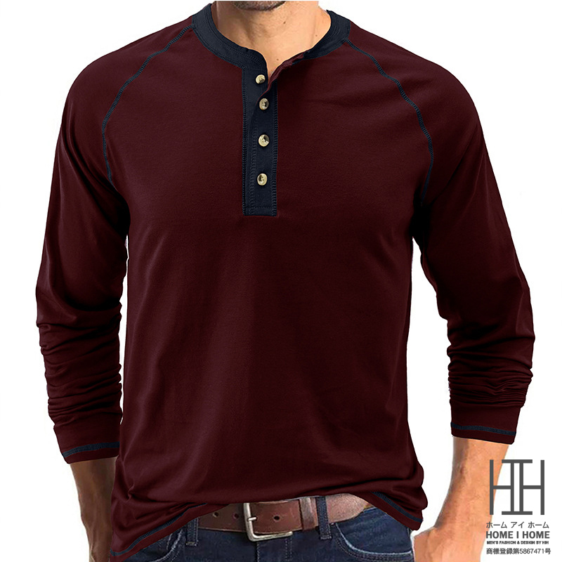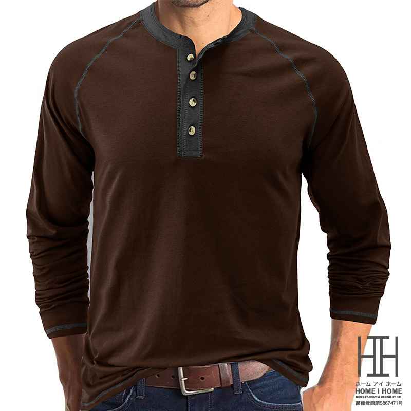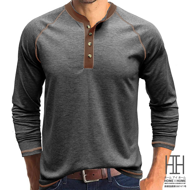 Tシャツ メンズ 長袖 ヘンリーネック ストレッチ おもしろTシャツ カラー配色 切り替え おしゃれ 個性 ロンT バンドTシャツ ゆったり アメカジ