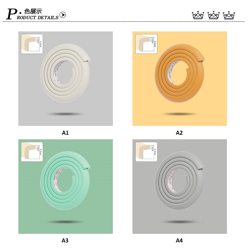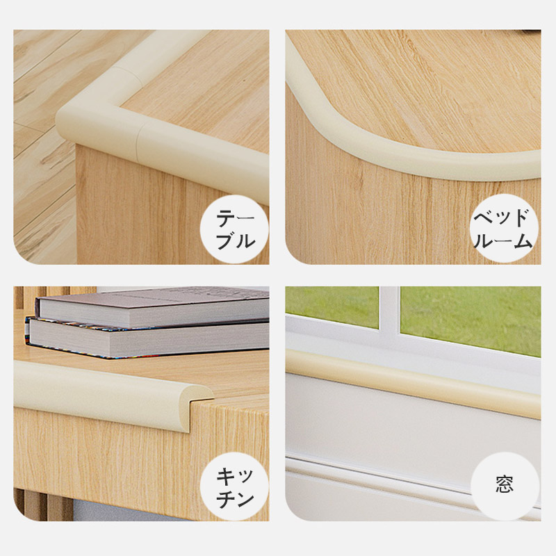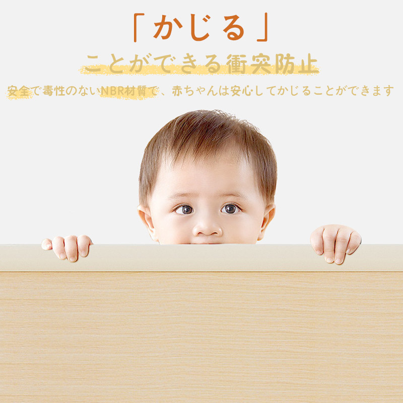 L字型のロールタイプのベビーガード。テーブル、棚、柱、段差など家中の赤ちゃんが転んでケガをしやすいところをしっかりガードできます。両面テープ付。