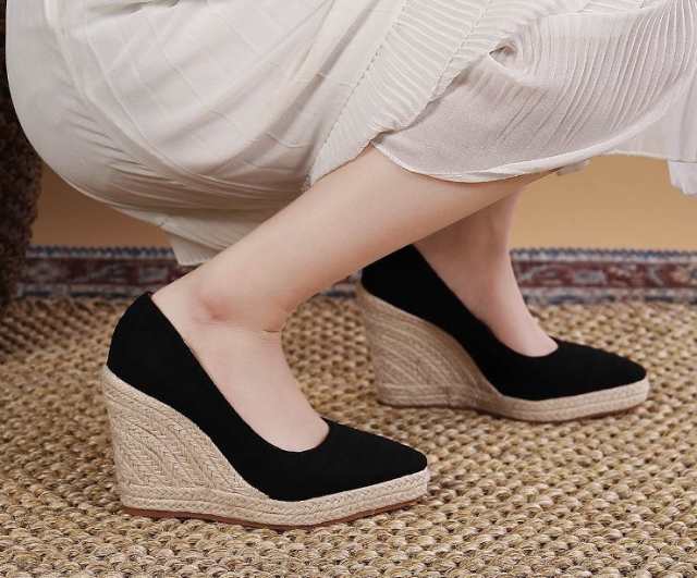 厚底 パンプス ハイヒール ウェッジソール パンプス 10CMヒール コンフォート レディース 脚長 リラックス スエード調 22-26CM
