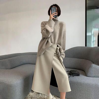 ニット セーター トップス タートルネック ハイネック レディース ドロップショルダー カジュアル シンプル エレフェミニン きれいめ 可愛い おしゃれ
