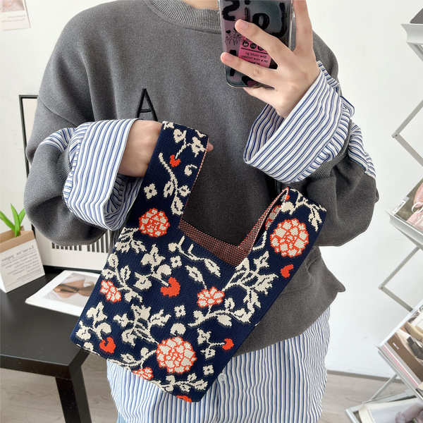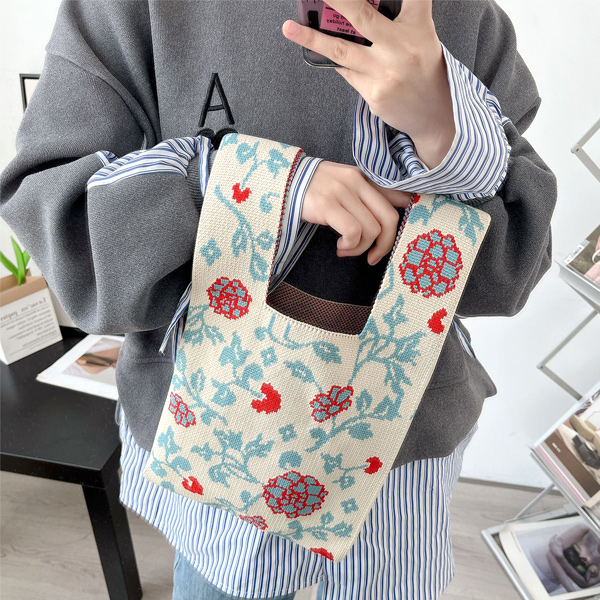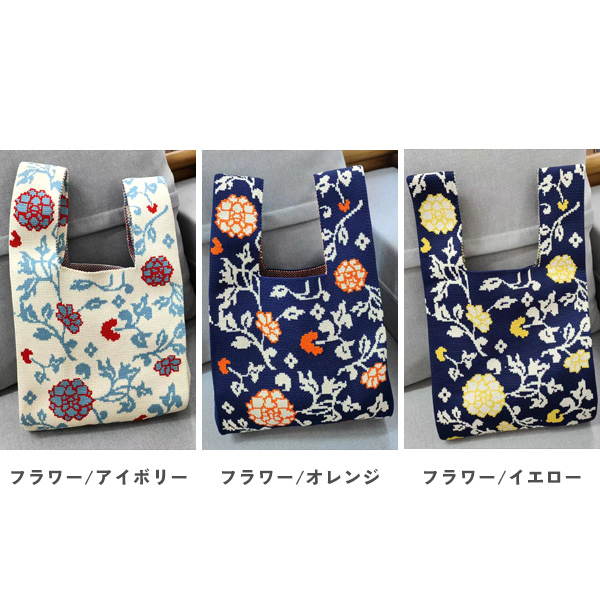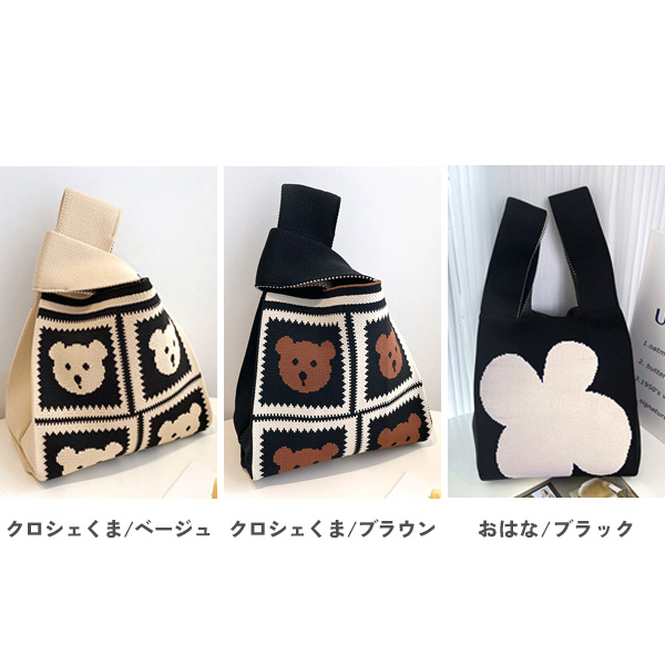 ニット バッグ ニットバッグ マルシェバッグ トートバッグ 縦型 ミニバッグ マルシェ レディース お洒落 送料無料 韓国 かぎ針 クロシェ編み ハンドバッグ