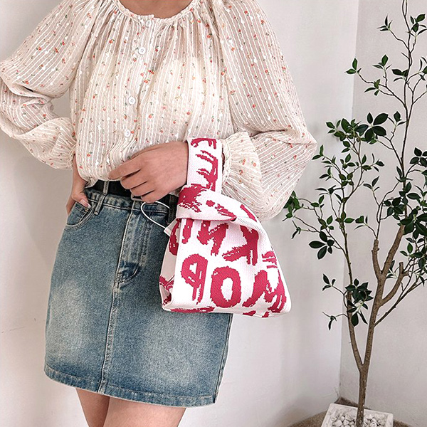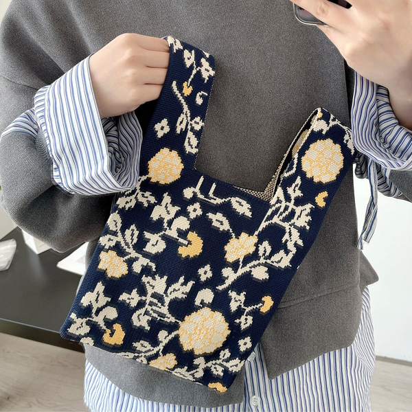 ニット バッグ マルシェバッグ 縦型 鞄 ハンドバッグ 韓国