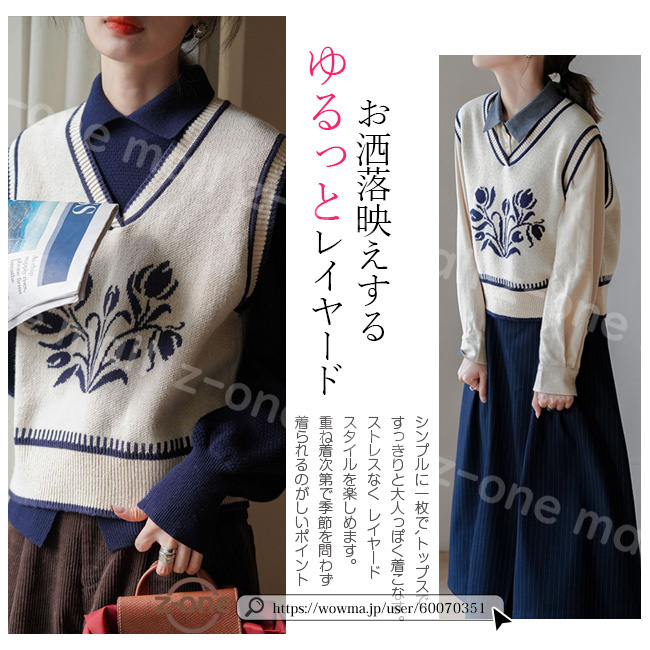 ベスト ニット プルオーバー レディース 新作 Vネック セーター 通学 春 体型カバー レイヤード 大人 可愛い 保温 学生 アウター 秋冬 通勤 ゆったり 柔らかい