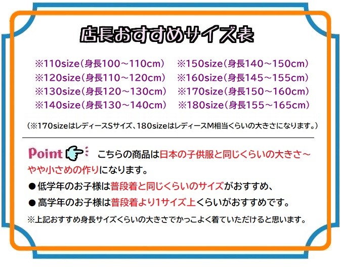 サイズ 110サイズ 120サイズ 130サイズ 140サイズ 150サイズ 160サイズ 170サイズ 180サイズ