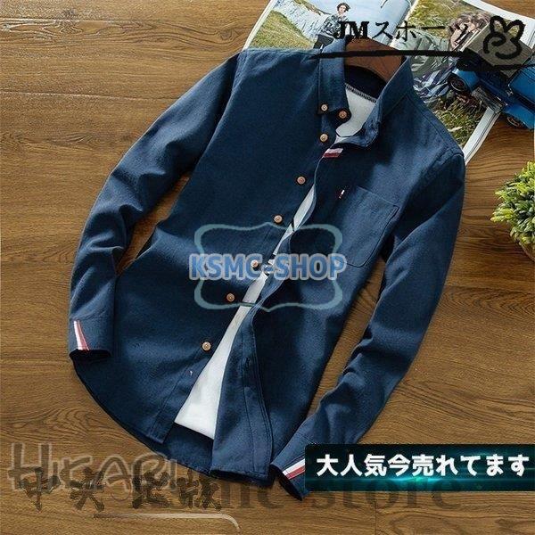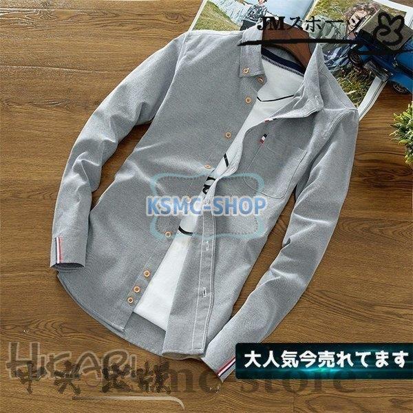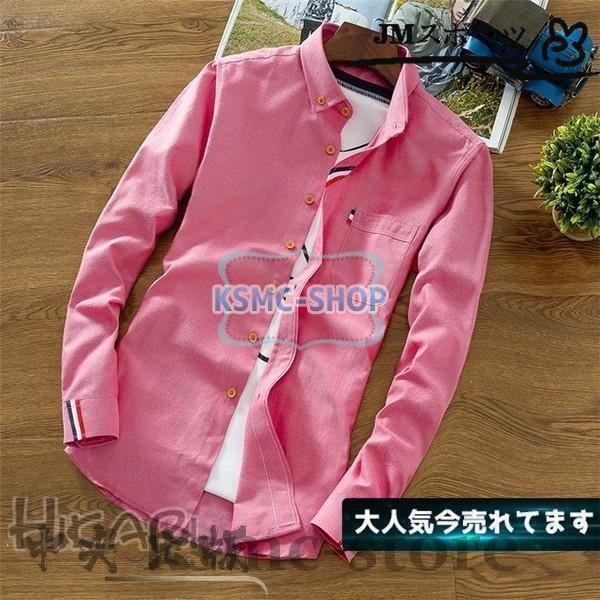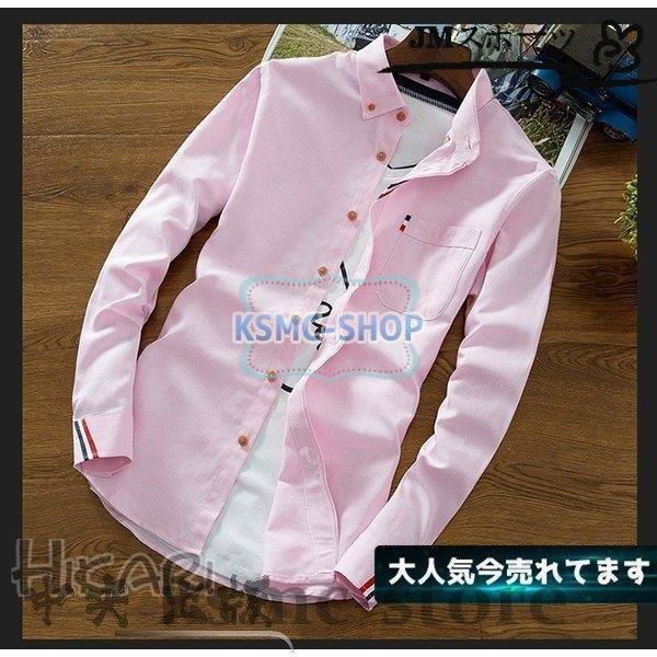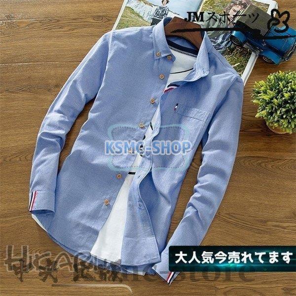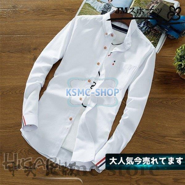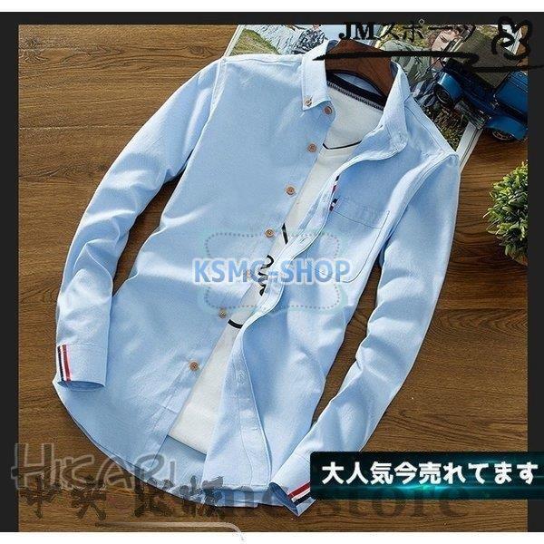 無地 カジュアルシャツ メンズ シャツ ボタンダウン 長袖シャツ スリム 通勤 通学 シンプル メンズファッション