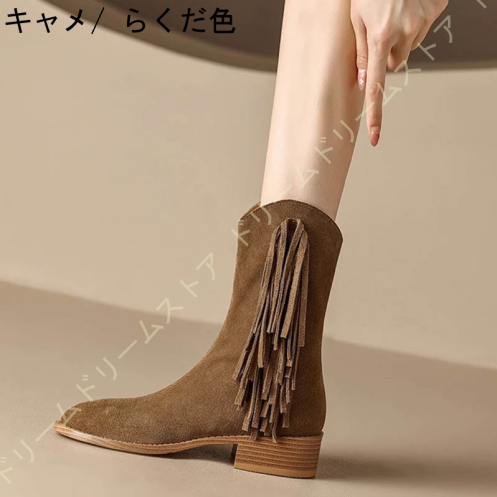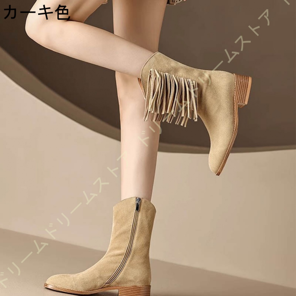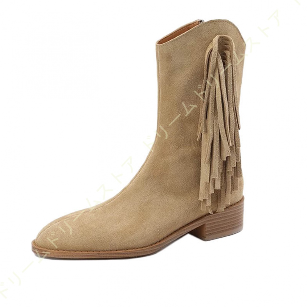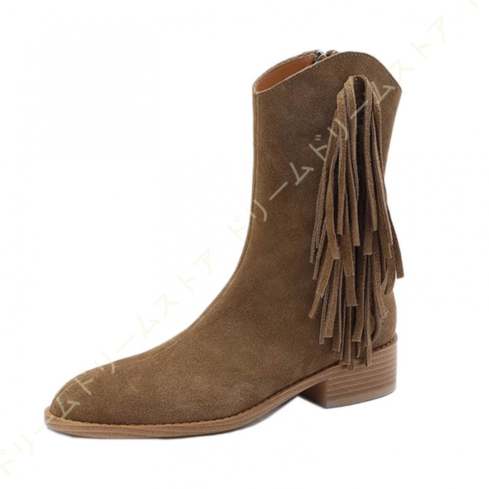 カウボーイブーツ ブーツ レディース ウエスタンブーツ 着痩せ 太めヒール フリンジ ビンテージブーツ 美脚 秋冬 ぺたんこ 女性用 ブーティ スエード スウェード 卒業式 入学式 袴ブーツ