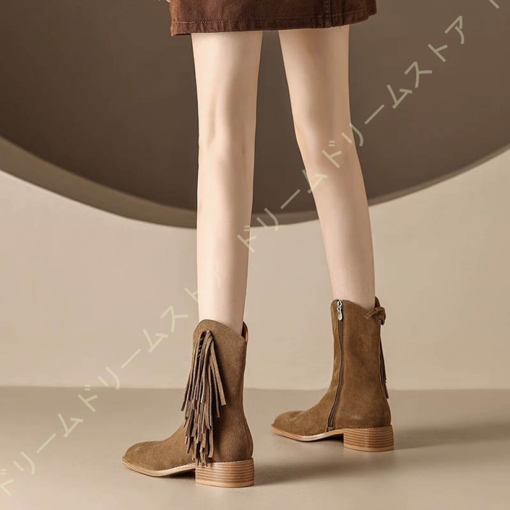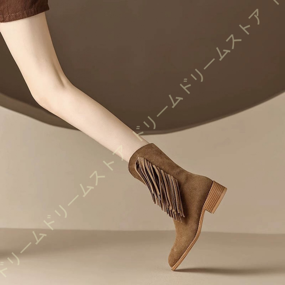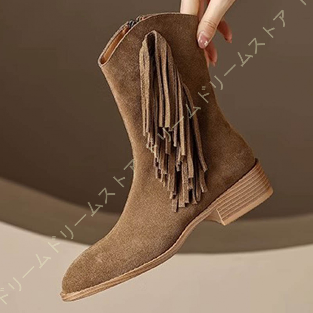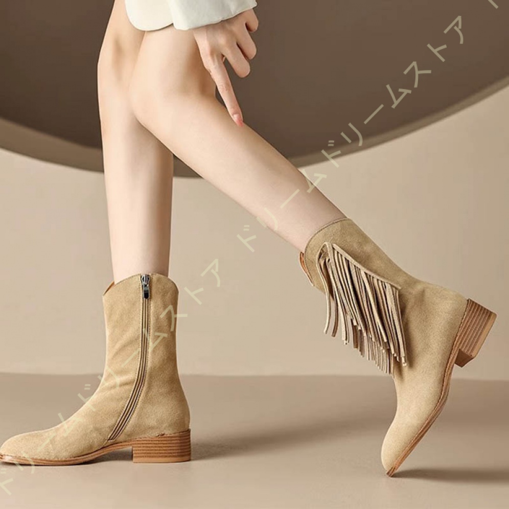 カウボーイブーツ ブーツ レディース ウエスタンブーツ 着痩せ 太めヒール フリンジ ビンテージブーツ 美脚 秋冬 ぺたんこ 女性用 ブーティ スエード スウェード 卒業式 入学式 袴ブーツ