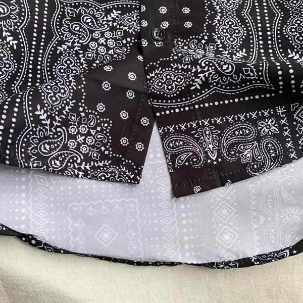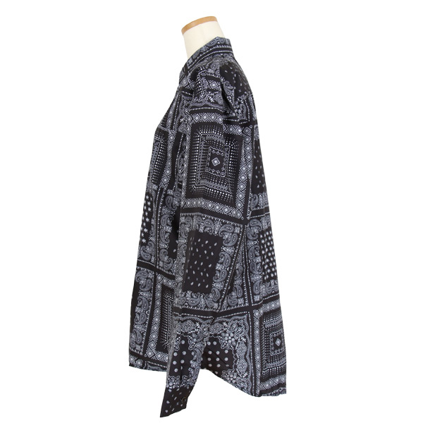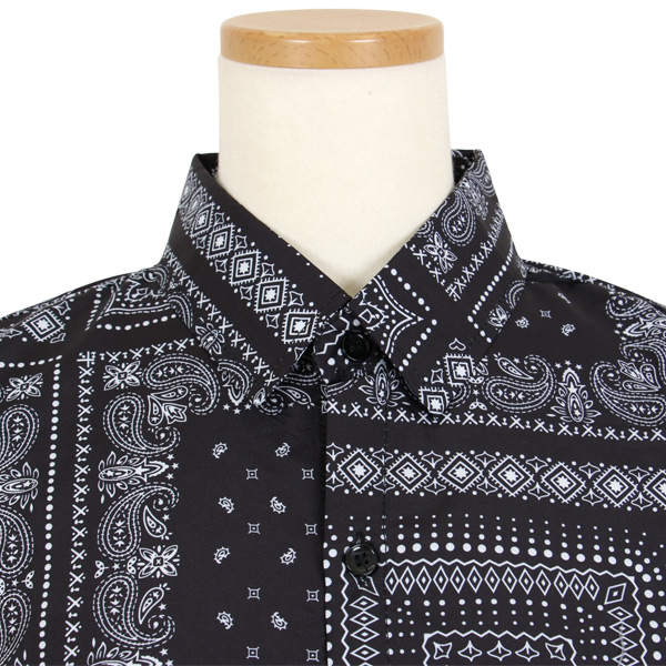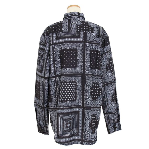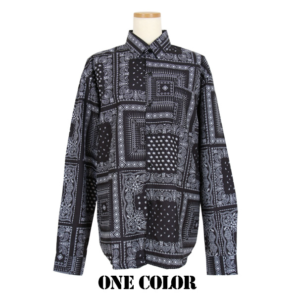 あり 柄シャツ ペイズ柄 バンダナ柄 長袖シャツ 黒 シ