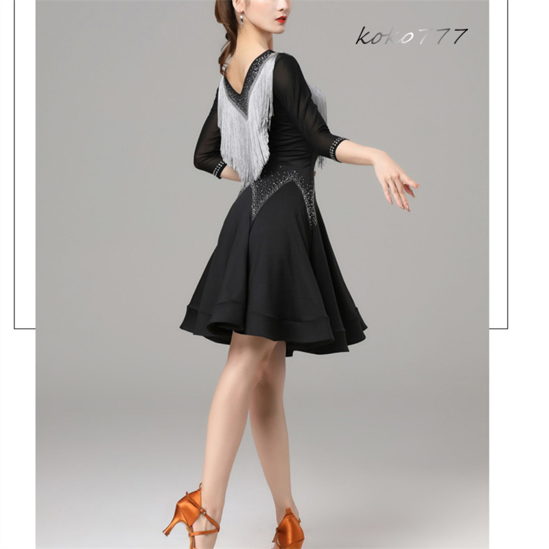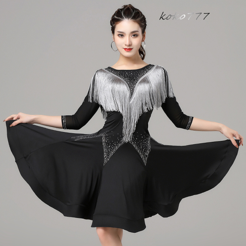 ドレス レディース ワンピース ラテンダンス ラインストーン フリンジ 公演 コンクール 舞台衣装 コスチューム 発表会 ひざ丈 パーティー モダンダンス ライブ