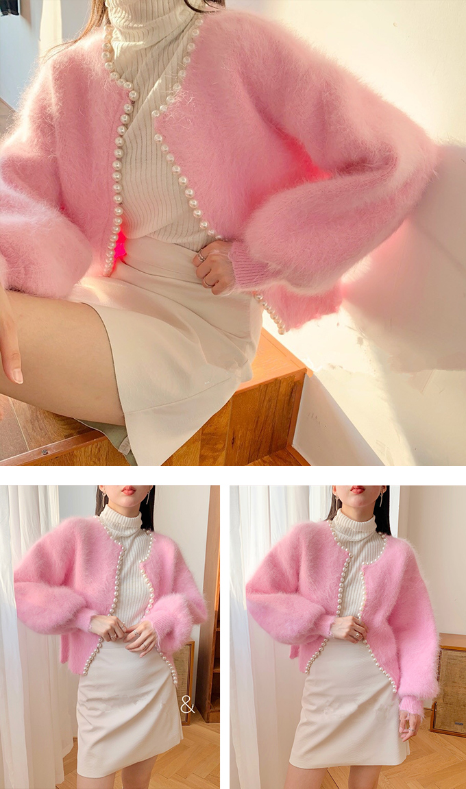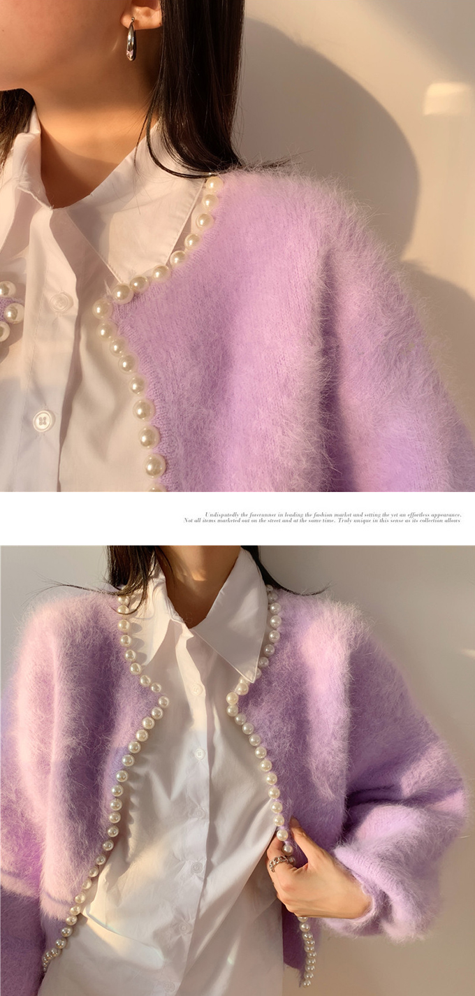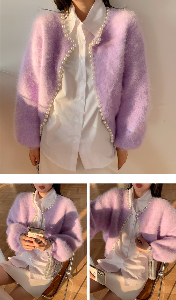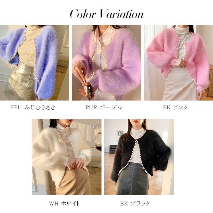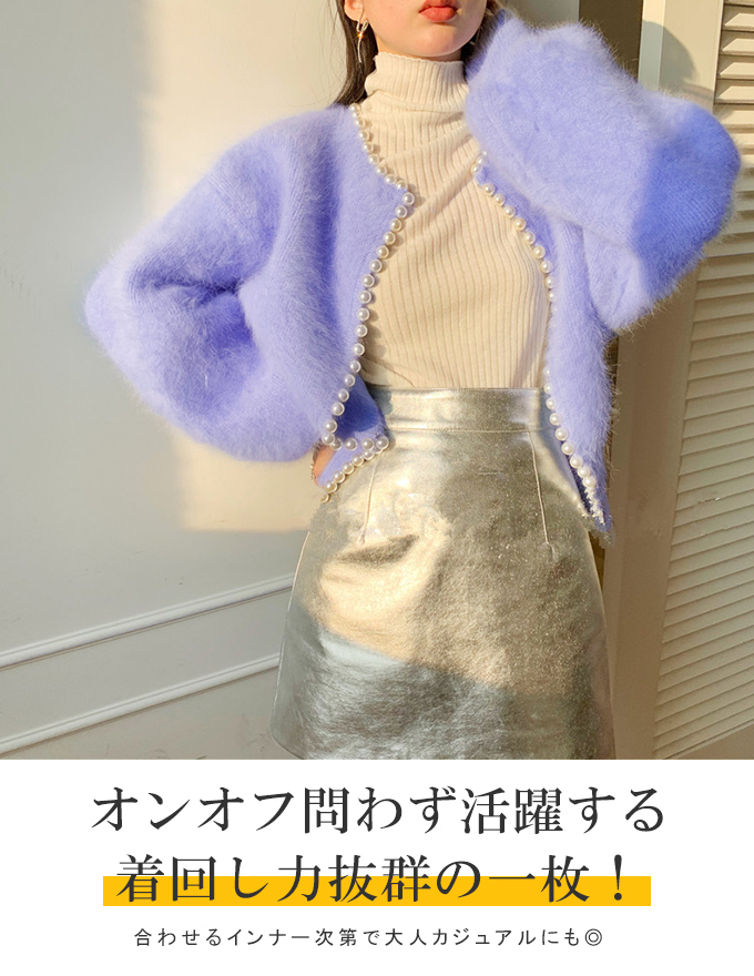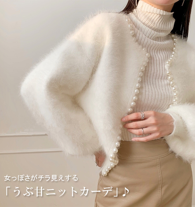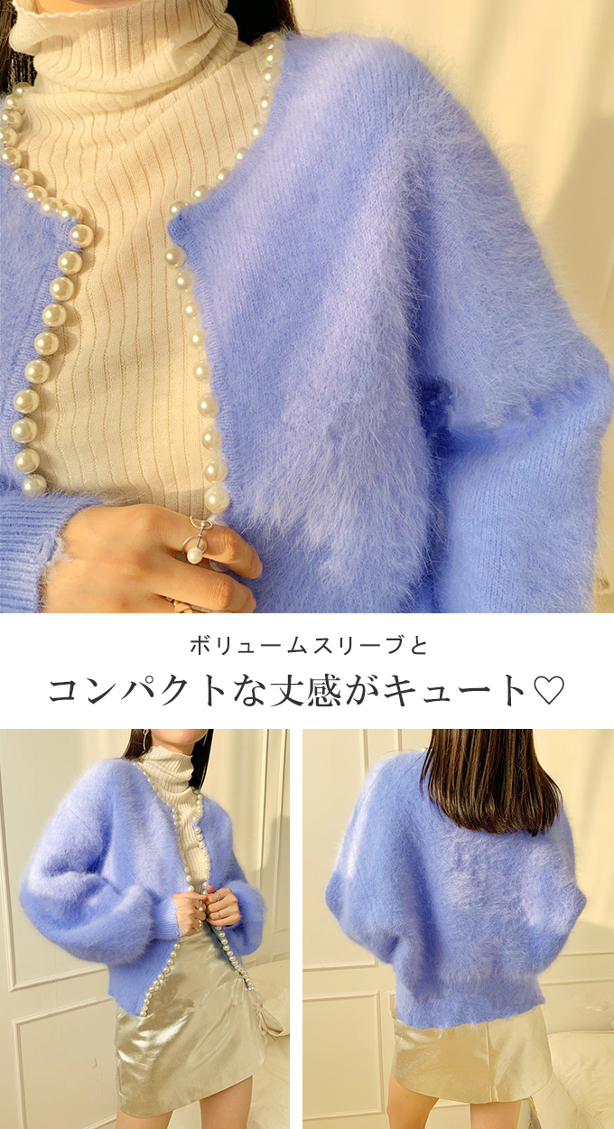 パール付きシャギーニットカーディガン パール シャギーニット レディース 羽織