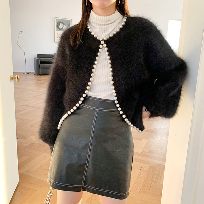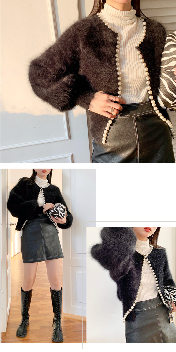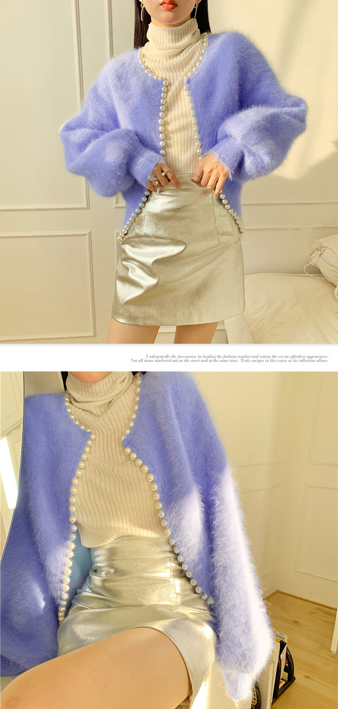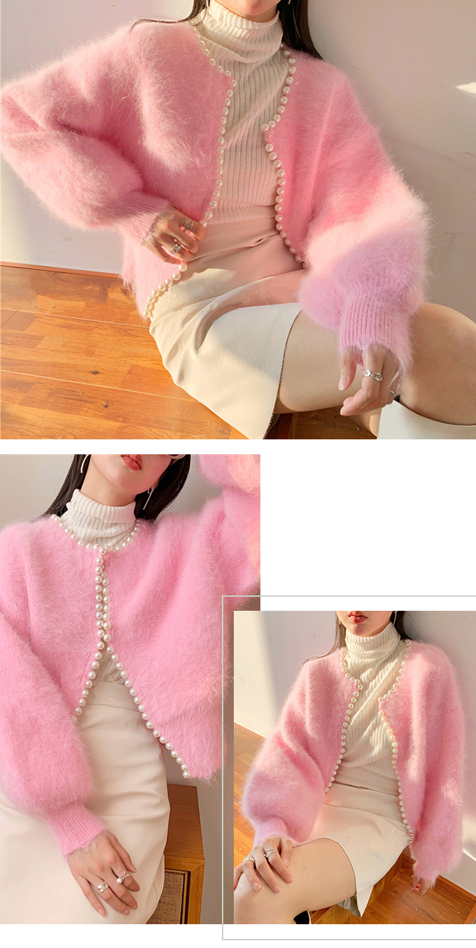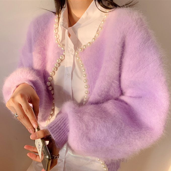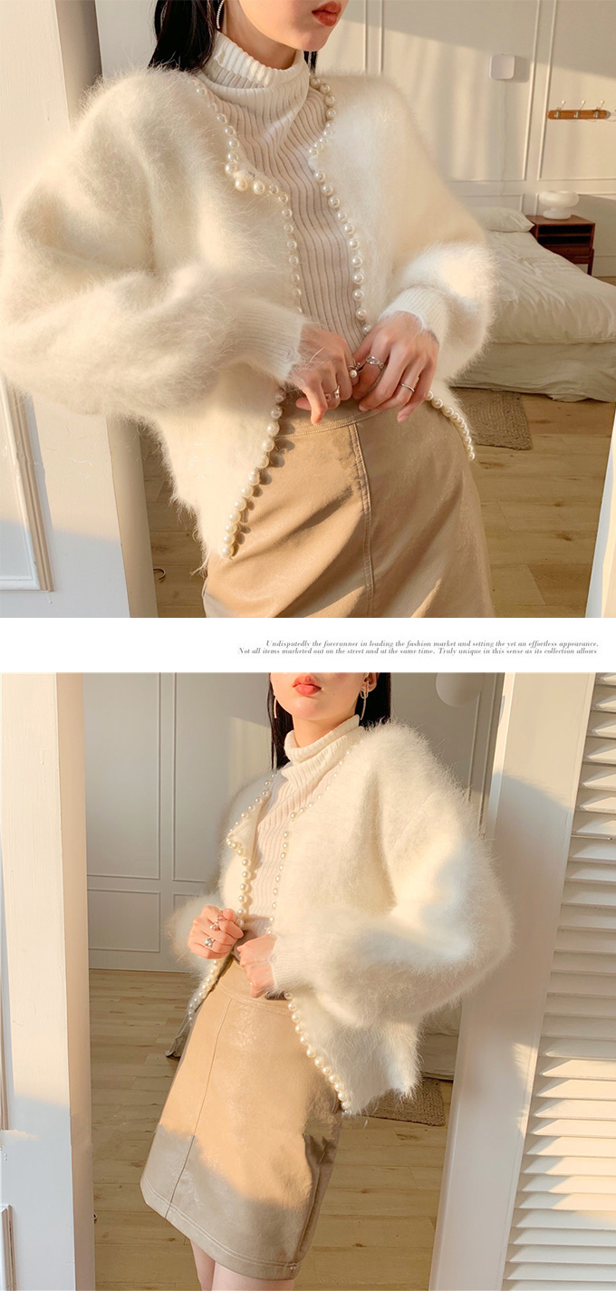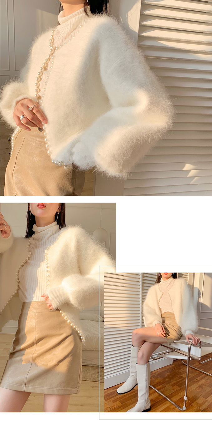 パール付きシャギーニットカーディガン パール シャギーニット レディース 羽織