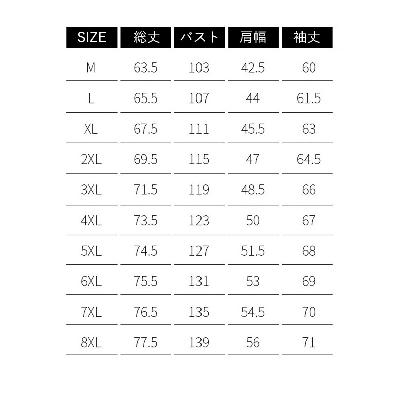 サイズ M L XL 2XL 3XL 4XL 5XL 6XL 7XL 8XL