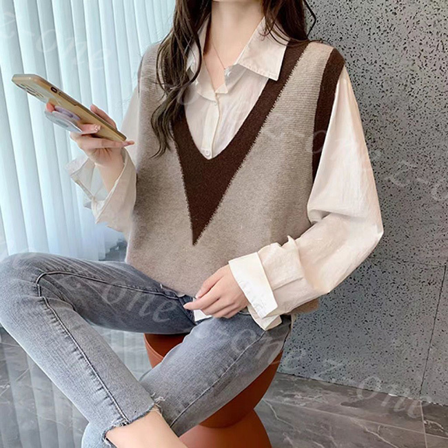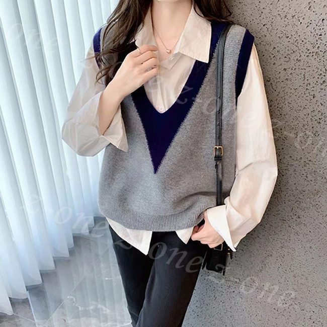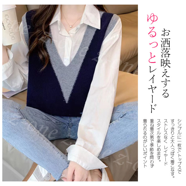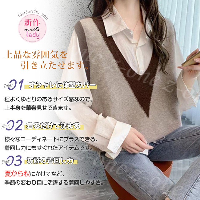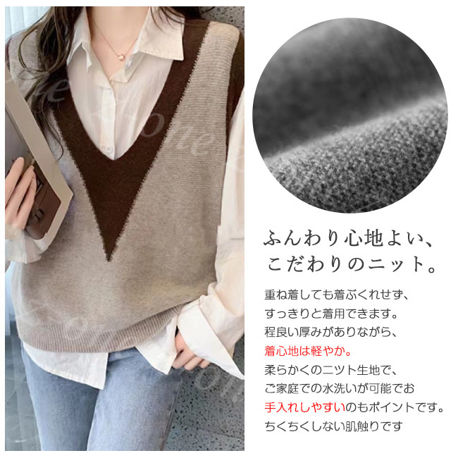 ベスト ニット プルオーバー レディース 新作 Vネック ゆったり アウター 学生 大人 秋冬 保温 春 セーター 通勤 可愛い レイヤード 体型カバー 通学 柔らかい