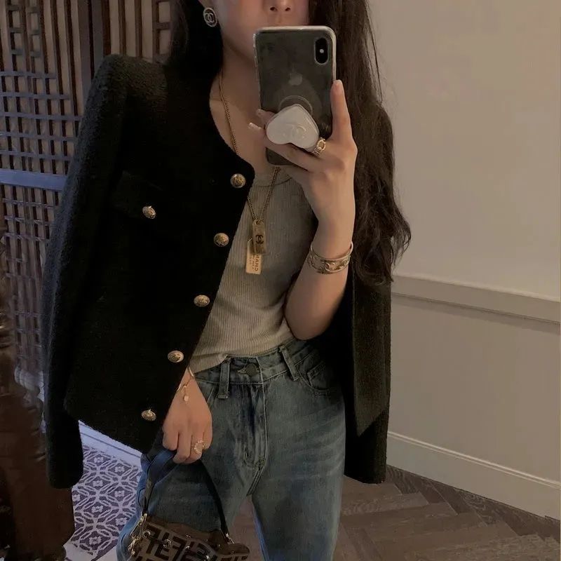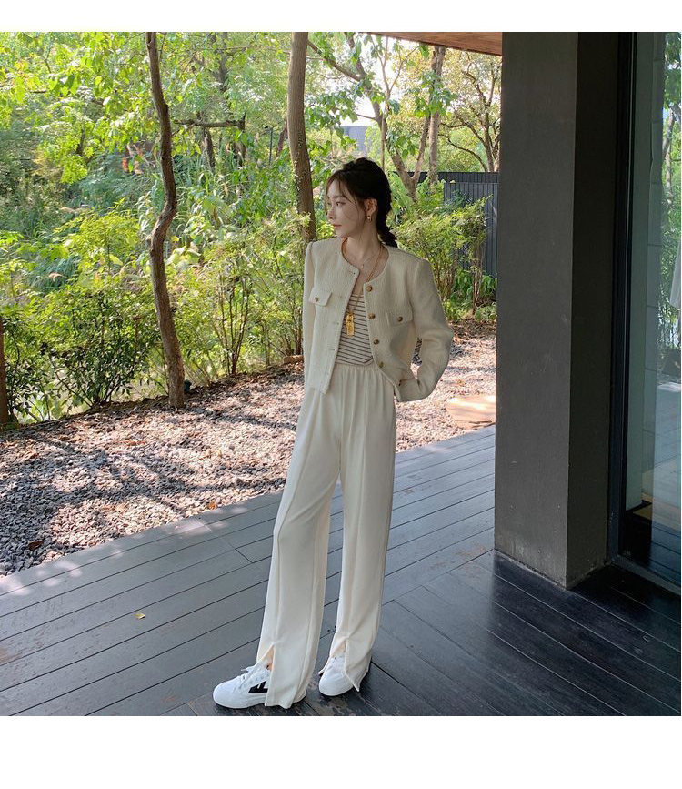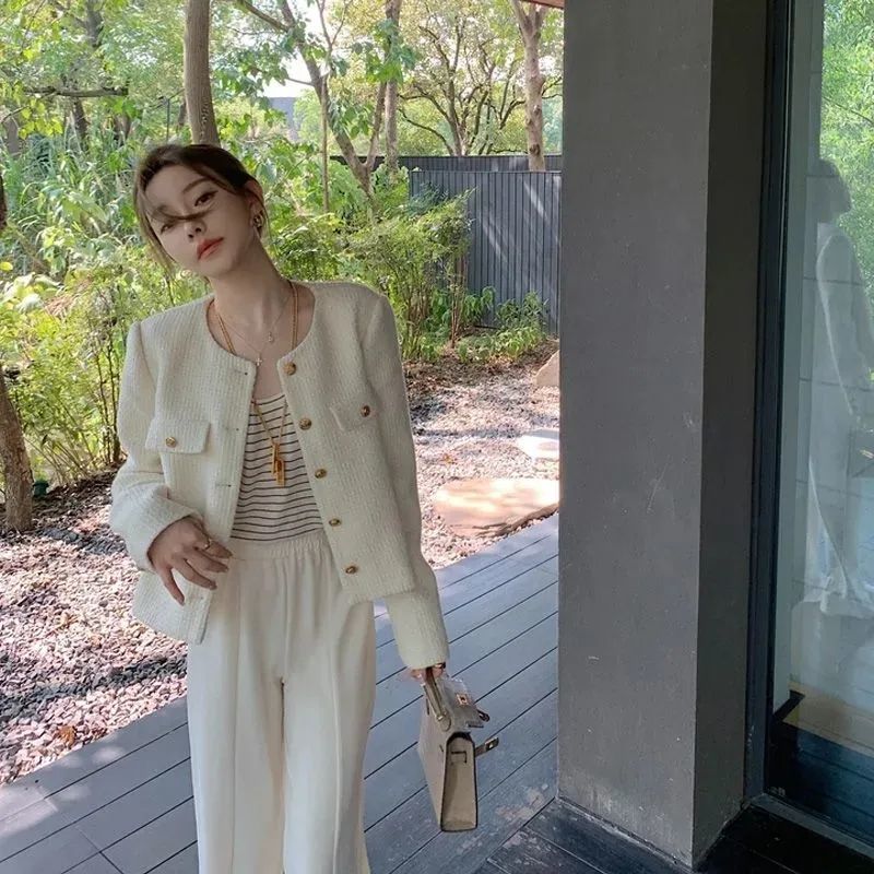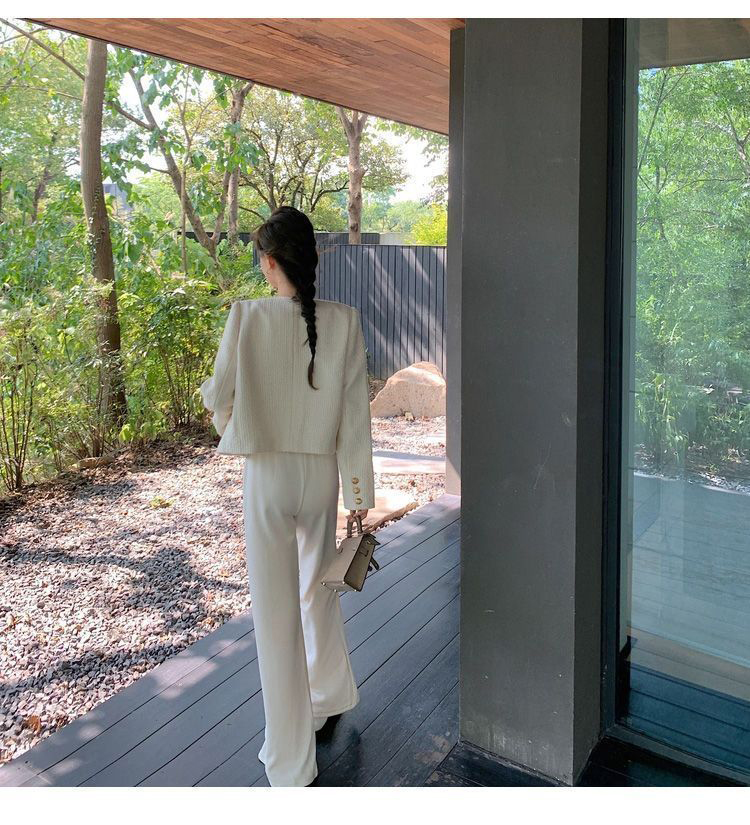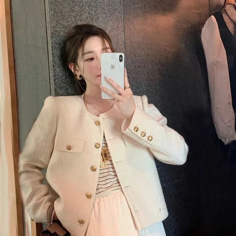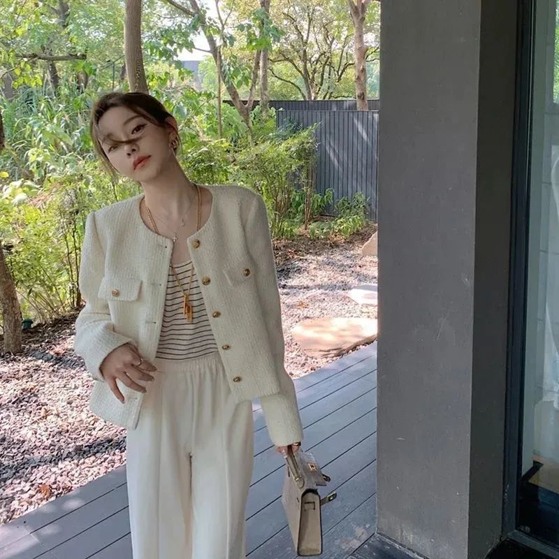 商品説明:ツイードジャケット ノーカラー ショート丈 エレガント アウター