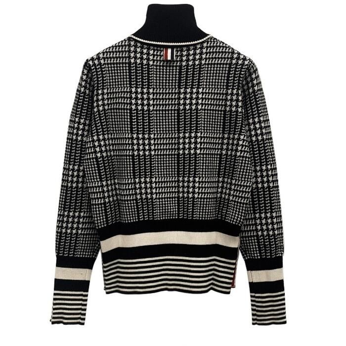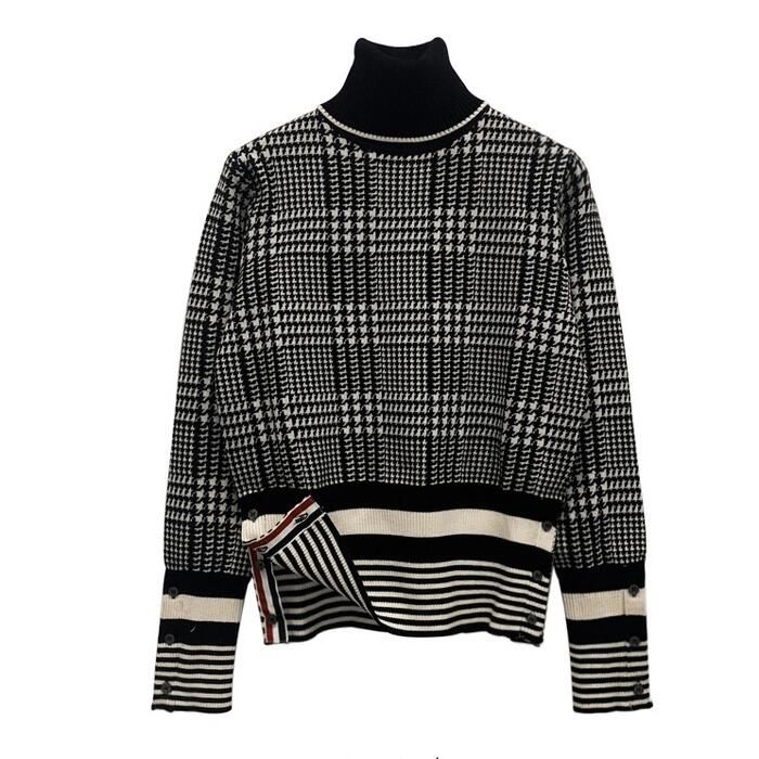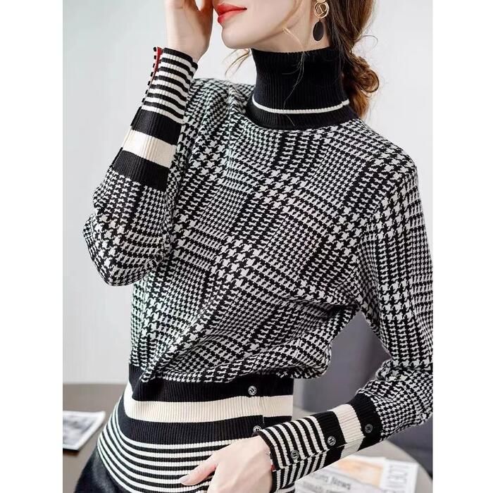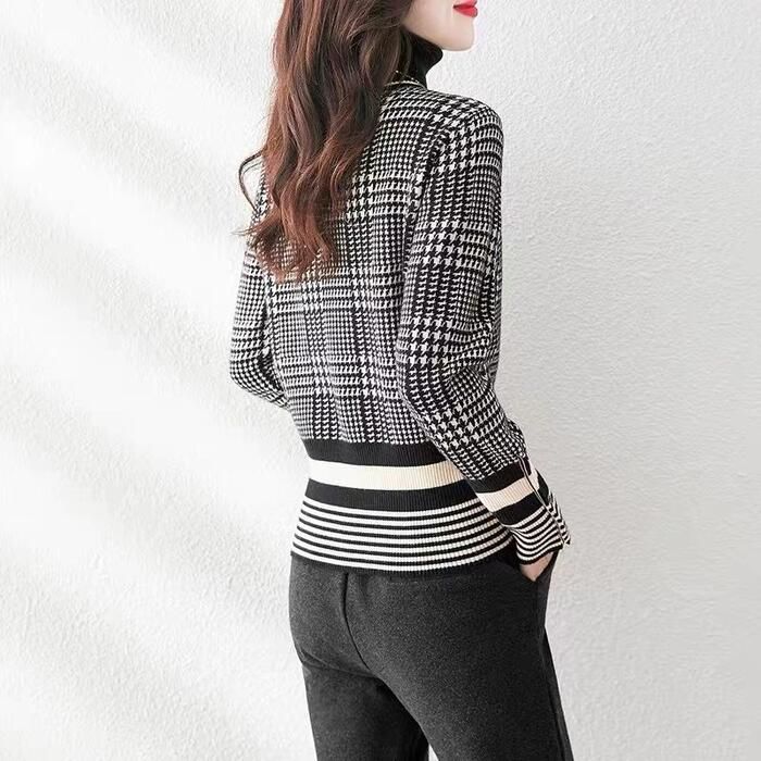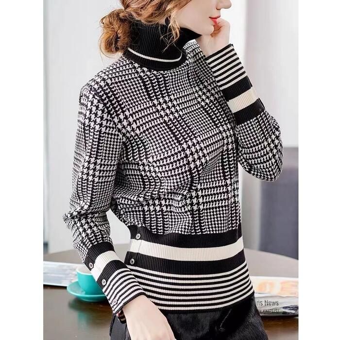 ニット トップス 千鳥格子 チェック タートルネック ハイネック 大人 長袖 セーター きれいめ おしゃれ カジュアル ボーダー クラシカル エレレディース