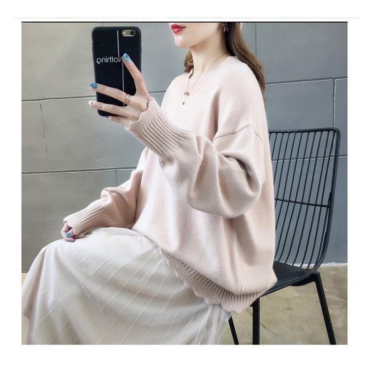 連携キーワード:ニットセーター レディース 秋冬 ニットソー 長袖 丸首セータートップス 無地 フレア ニットセーター ゆったり ニット プレゼント韓国風 大人可愛い 着痩せ 4色