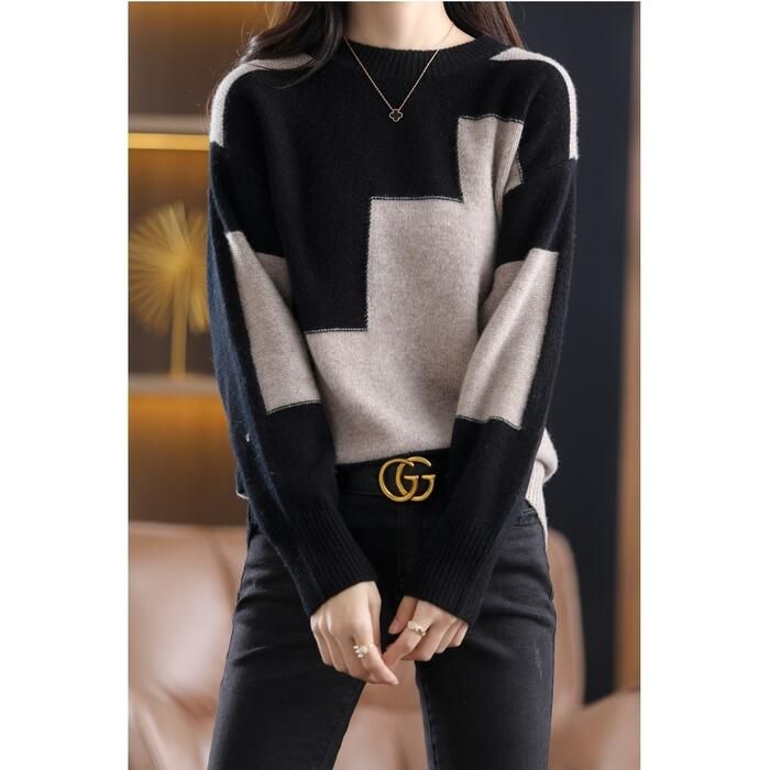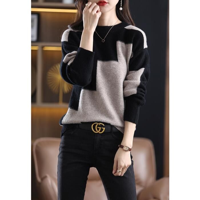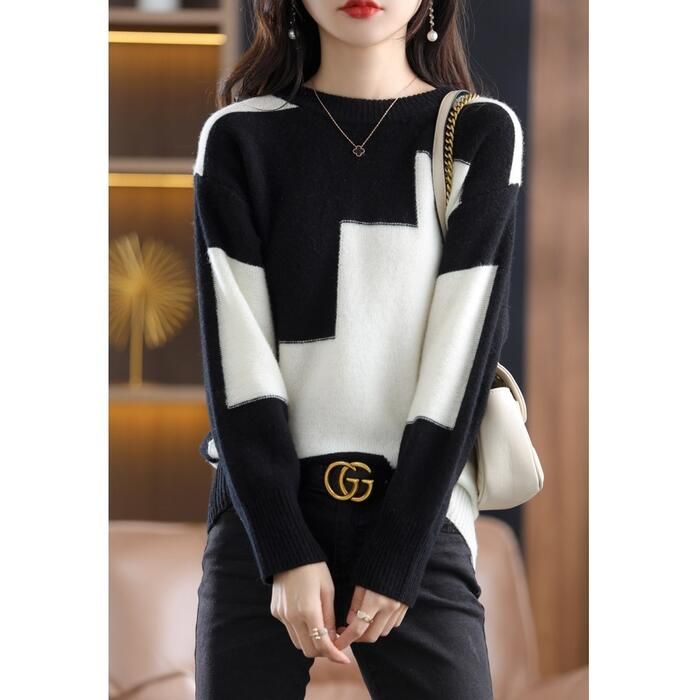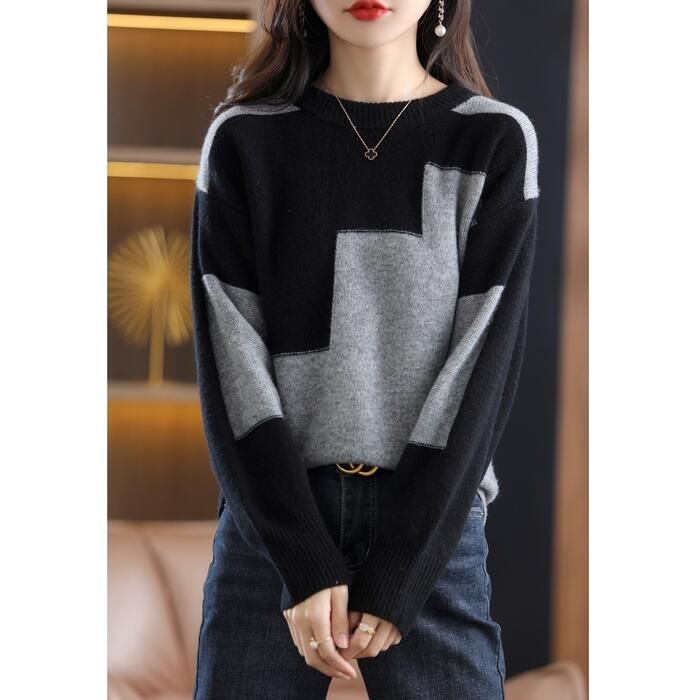 トップス ニット セーター バイプルオーバー クルーネック レディース フェミニン おしゃれ エレカジュアル 可愛い 長袖 きれいめ 切り替え 大人